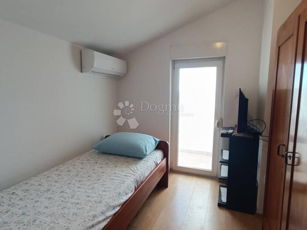 Vor dem Eingang im Erdgeschoss befindet sich eine überdachte Terrasse mit Kamin sowie eine 20 m große Konoba. Vor dem Haus erstreckt sich ein Garten, davor befinden sich zwei Parkplätze sowie ein altes Steinhaus, das als Garage genutzt wird. Es besteht die Möglichkeit zum Bau eines Swimmingpools. Die Immobilie befindet sich auf einem Grundstück von insgesamt 371 m. Die Fassade wurde vor fünf Jahren erneuert, ebenso wie die PVC-Fenster und -Türen.