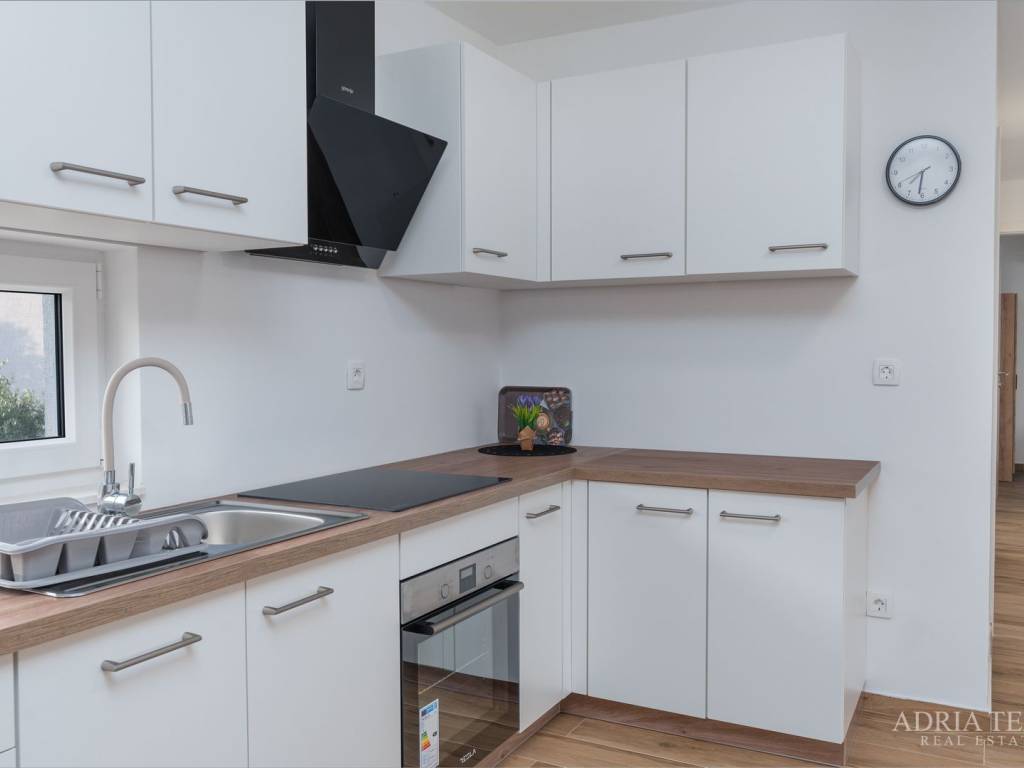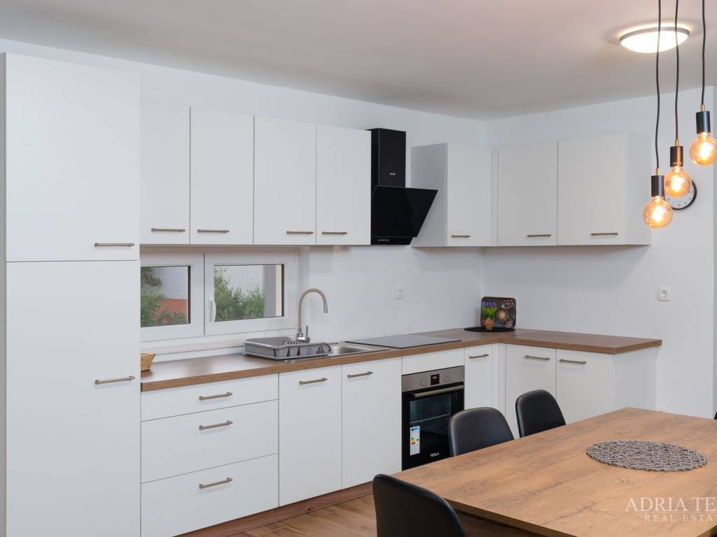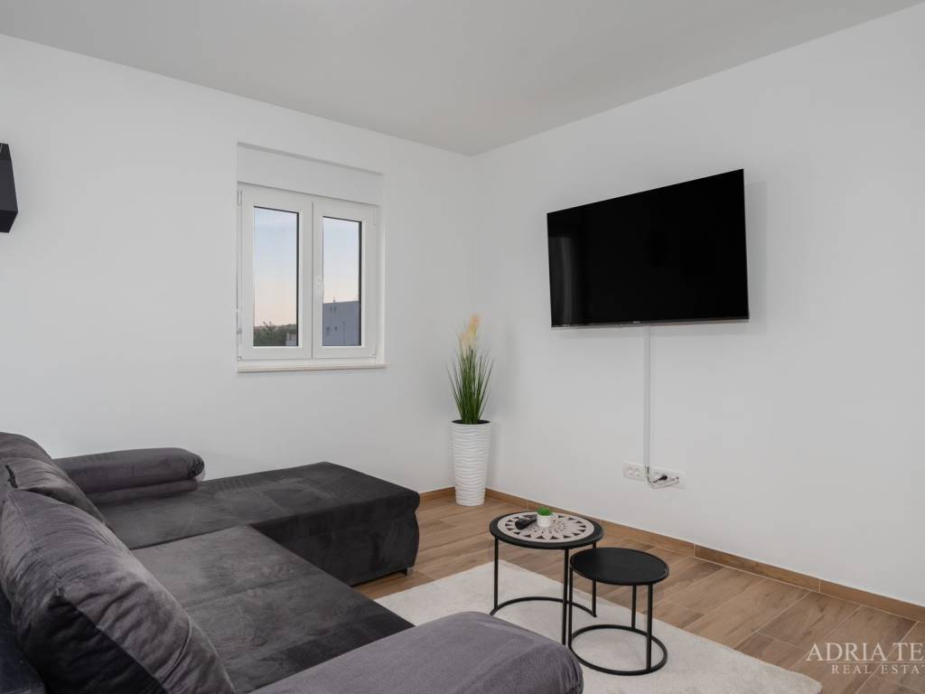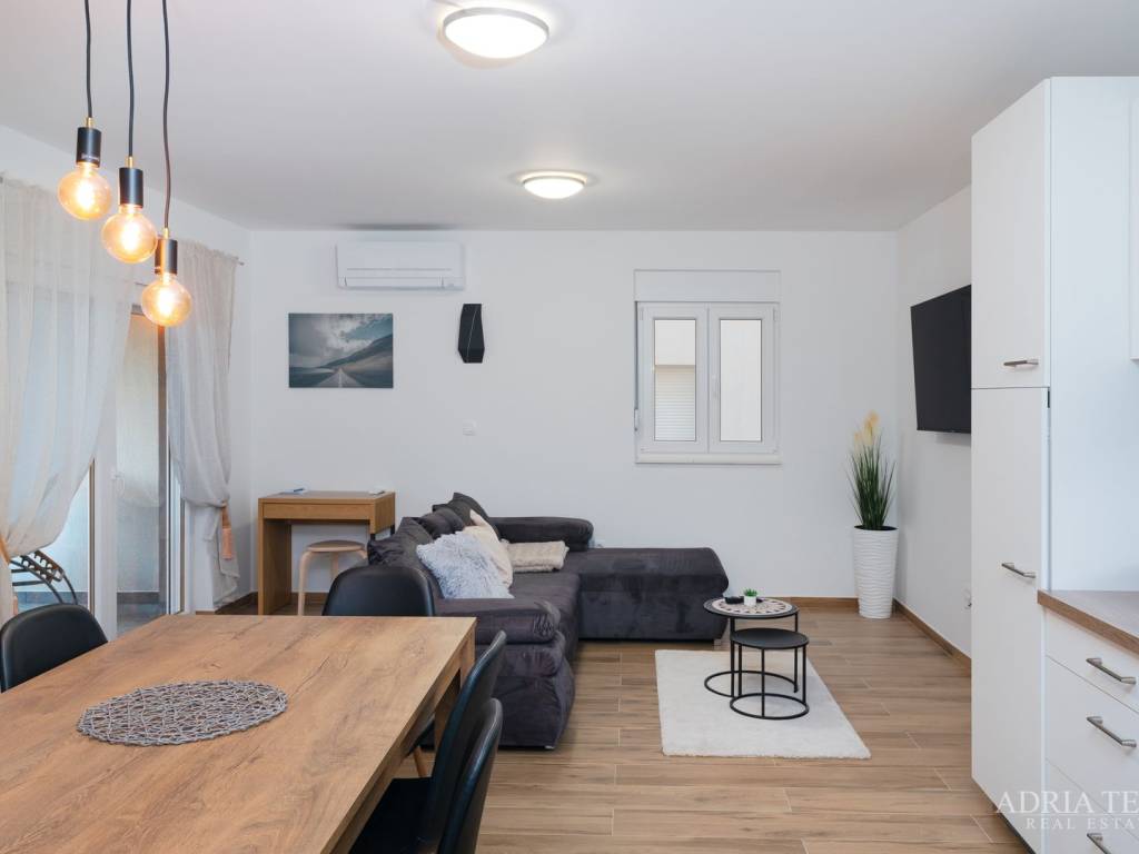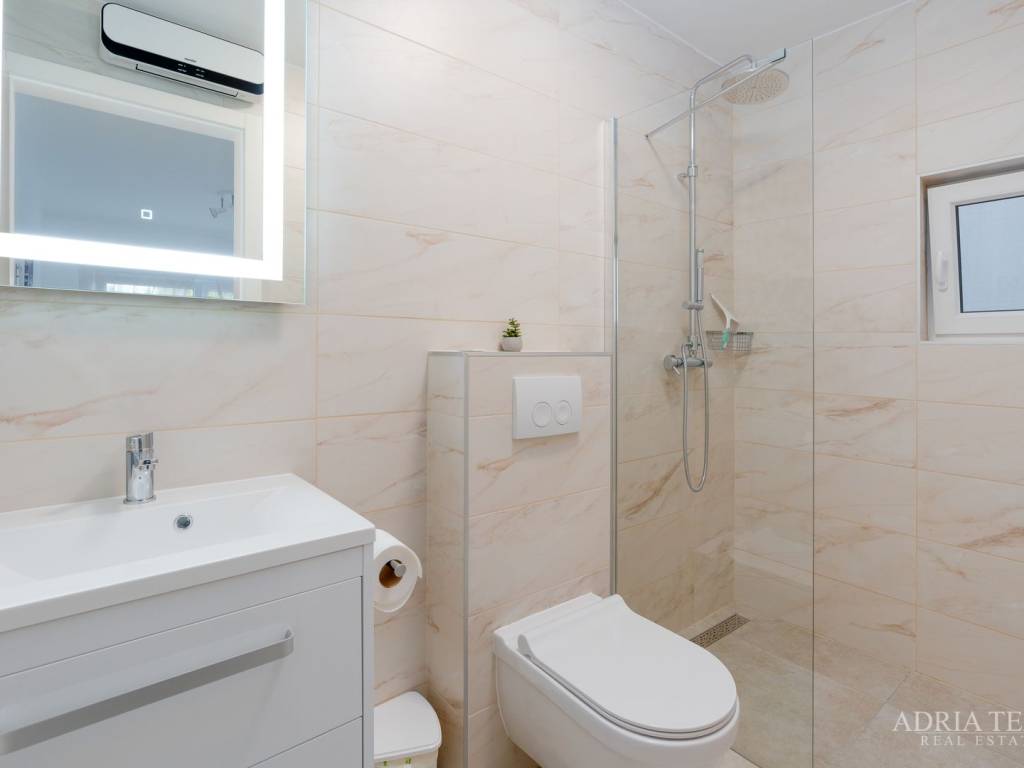 Apartman je potpuno namješten i odmah useljiv, a sastoji se od otvorenog koncepta kuhinje s blagovaonicom i dnevnim boravkom, dvije spavaće sobe te dvije moderno opremljene kupaonice. Posebnu vrijednost čine prostrani balkon, terasa te krovna sunčana terasa s jacuzzijem, idealna za opuštanje i uživanje.