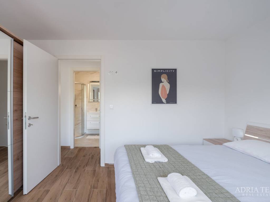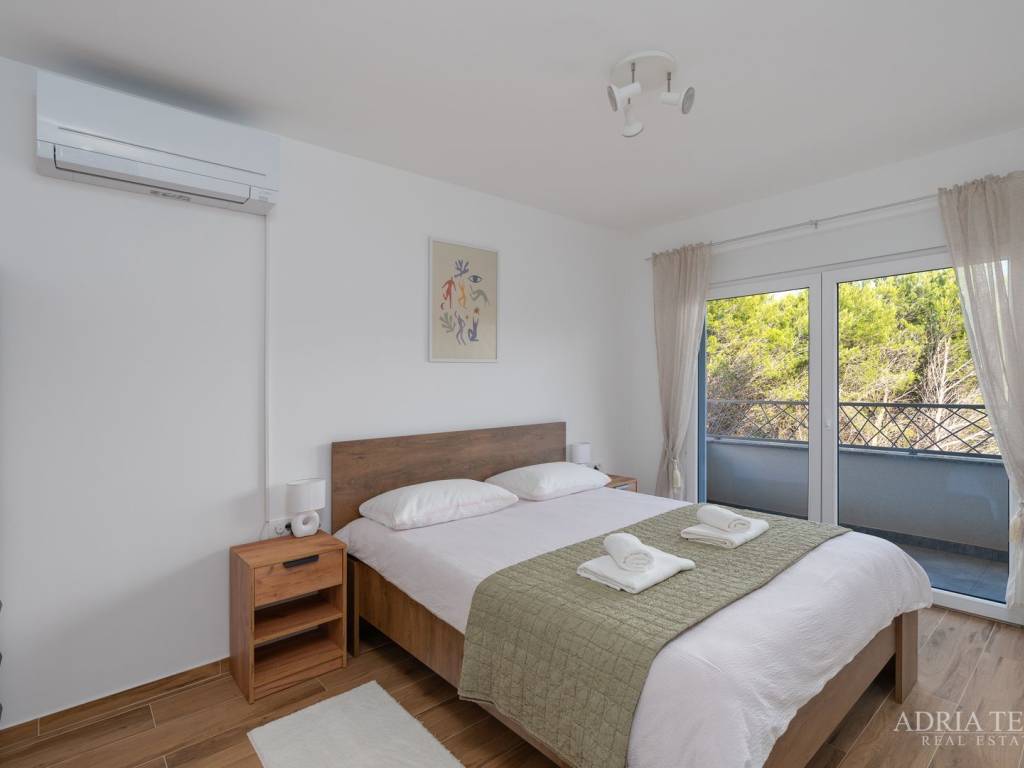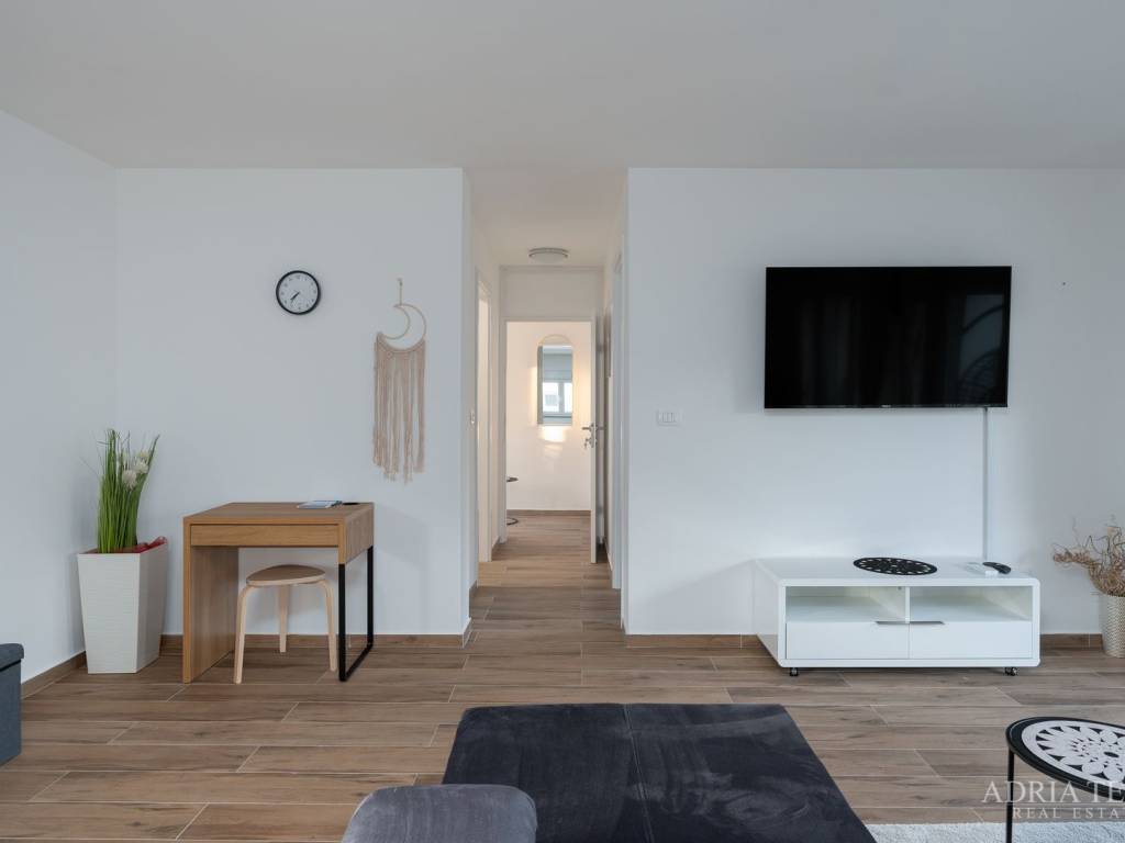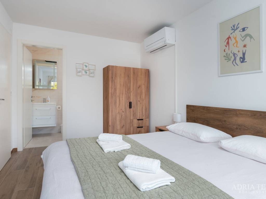 Apartman je opremljen klima uređajima, TV-om i Wi-Fi mrežom te je odmah useljiv. U cijenu su uključena 2 parkirna mjesta.