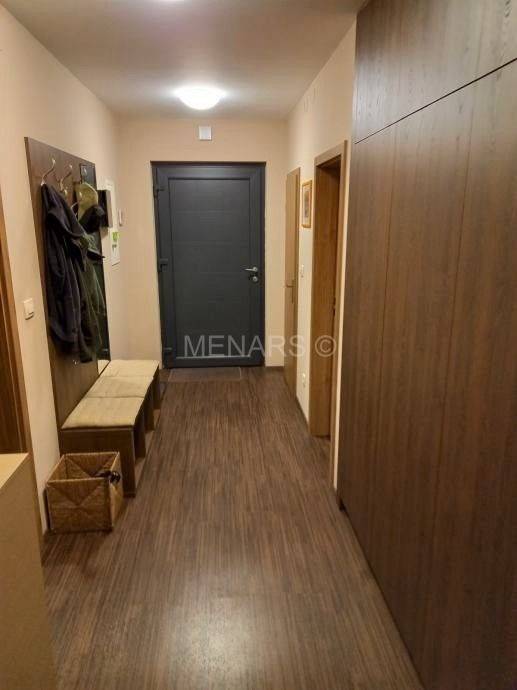 Sastoji se od ulaznog predprostora/hodnika, kupaone 1 s tušem i wc-om, dnevnog boravaka, kuhinje s blagovaonom, spavaće sobe, radne sobe, dječje sobe, sobe za goste, kupaone 2 s kadom i wc-om, te ostave u kojoj se nalazi plinski protočni bojler i perilica rublja.