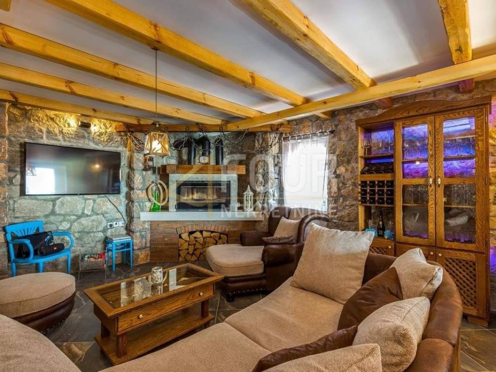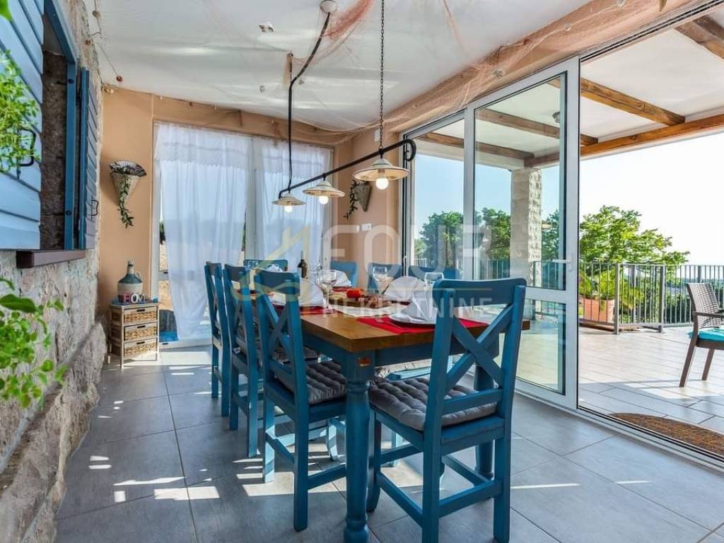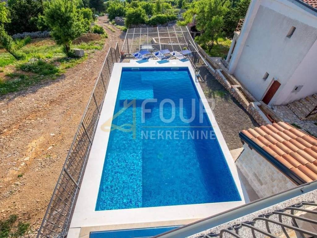 Wir bieten ein freistehendes Haus mit Swimmingpool, einem Garten von 442 m2 und einem wunderschönen Blick auf das Meer, die Inseln und Velebit.