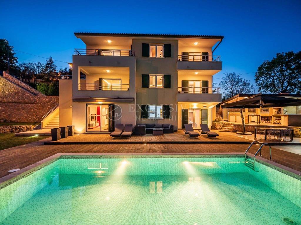 OPATIJA, POBRI – wir verkaufen eine wunderschön eingerichtete Villa mit Swimmingpool in einem ruhigen Teil von Pobr mit freiem Blick auf das Meer.