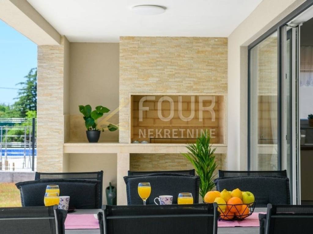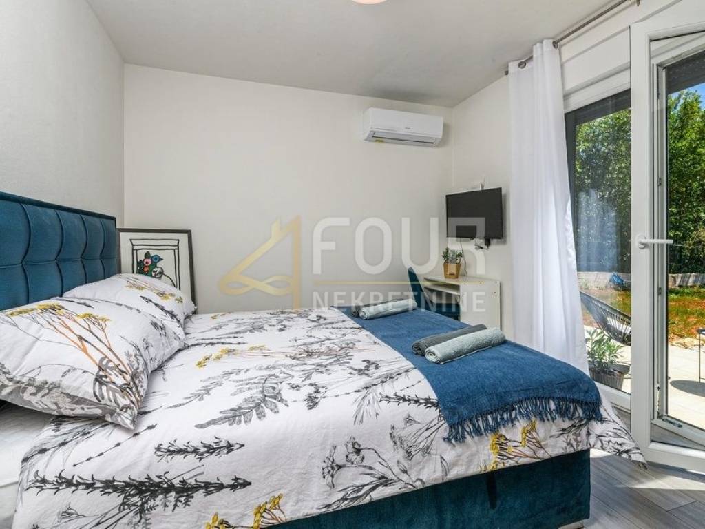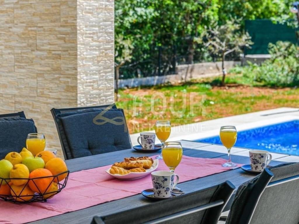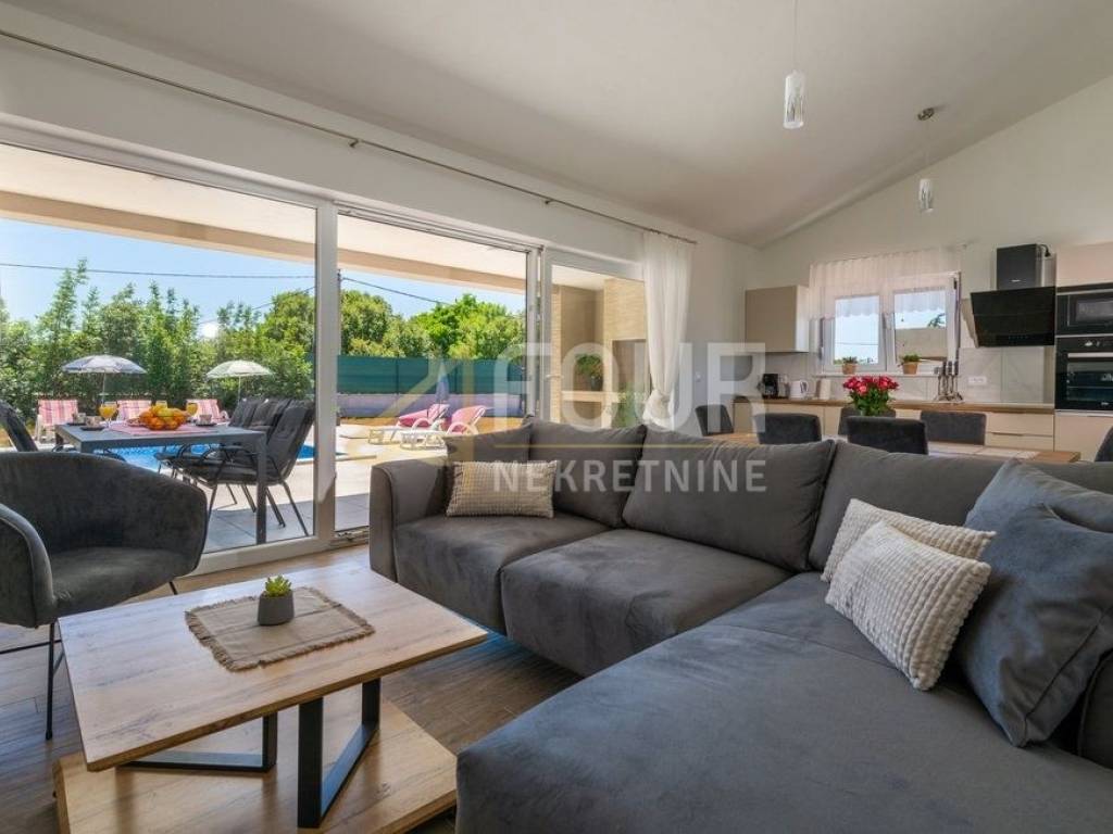Im Angebot steht eine wunderschöne freistehende Villa - ein modernes Erdgeschoss, erbaut im Jahr 2022, mit einer Fläche von 126 m2 auf einem großzügigen Grundstück von 1.039 m2. Die Villa besteht aus einem geräumigen Apartment mit drei Schlafzimmern, Wohnzimmer, voll ausgestatteter Küche und Essbereich sowie drei modernen Badezimmern. Große Glasfenster mit PVC-Fensterrahmen sorgen für viel Tageslicht und direkten Zugang zur überdachten Terrasse und zum Garten. Im gepflegten Garten befindet sich ein Pool zum Erfrischen und Entspannen sowie ein Grillbereich für gesellige Zusammenkünfte. Es stehen auch drei Parkplätze zur Verfügung. Diese Immobilie bietet eine ideale Gelegenheit für ein ruhiges Familienleben, sowie als Investition für touristische Vermietungen.