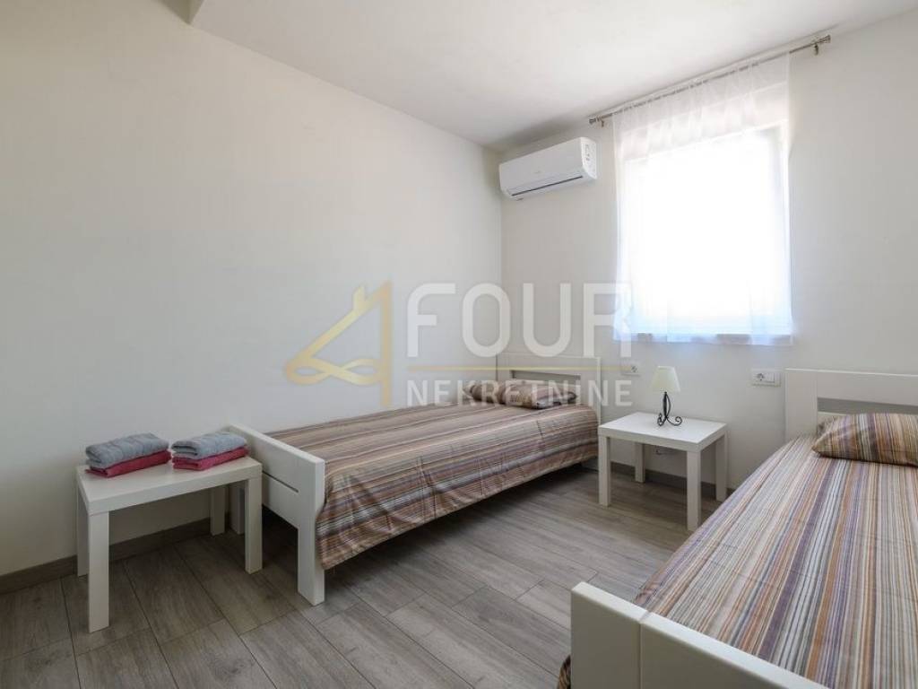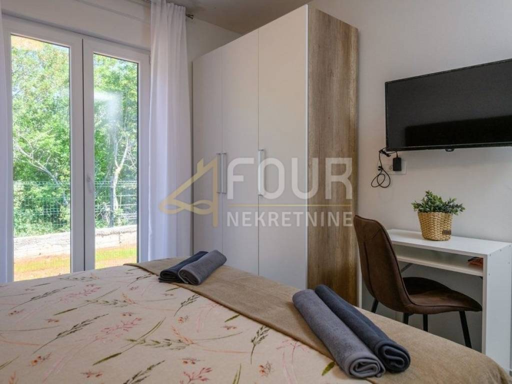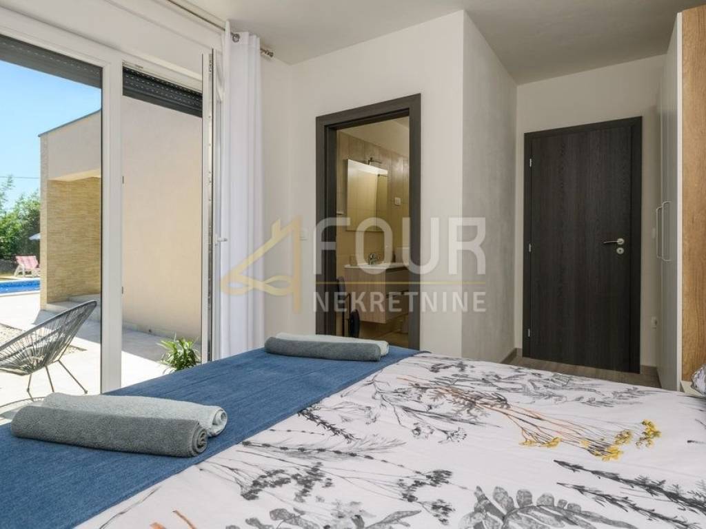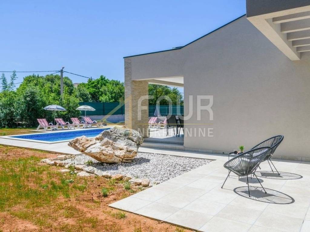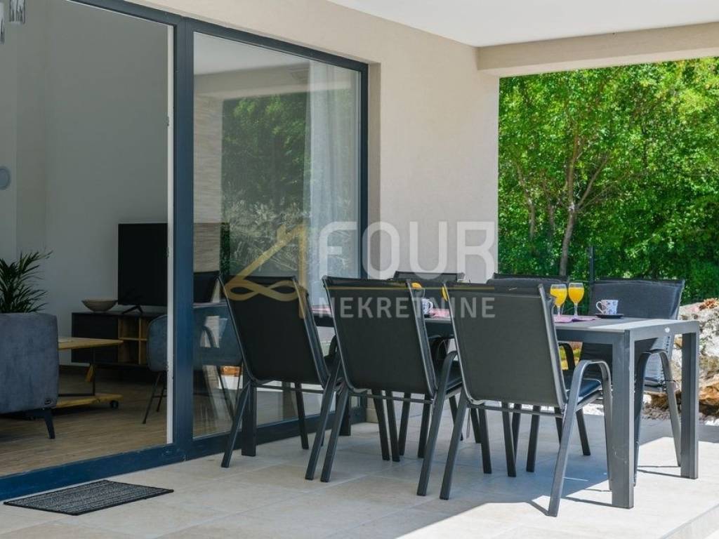 Im Angebot steht eine wunderschöne freistehende Villa - ein modernes Erdgeschoss, erbaut im Jahr 2022, mit einer Fläche von 126 m2 auf einem großzügigen Grundstück von 1.039 m2. Die Villa besteht aus einem geräumigen Apartment mit drei Schlafzimmern, Wohnzimmer, voll ausgestatteter Küche und Essbereich sowie drei modernen Badezimmern. Große Glasfenster mit PVC-Fensterrahmen sorgen für viel Tageslicht und direkten Zugang zur überdachten Terrasse und zum Garten. Im gepflegten Garten befindet sich ein Pool zum Erfrischen und Entspannen sowie ein Grillbereich für gesellige Zusammenkünfte. Es stehen auch drei Parkplätze zur Verfügung. Diese Immobilie bietet eine ideale Gelegenheit für ein ruhiges Familienleben, sowie als Investition für touristische Vermietungen.