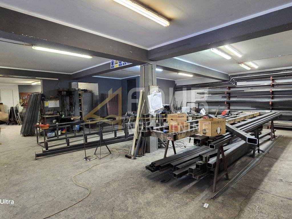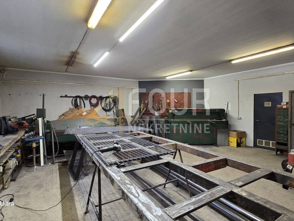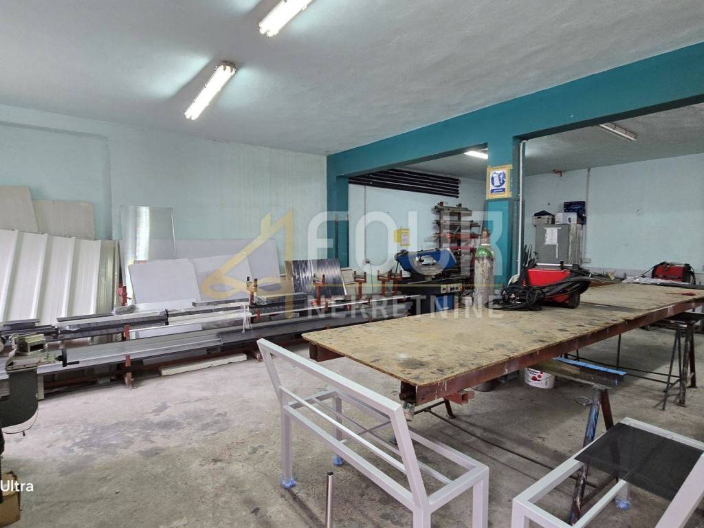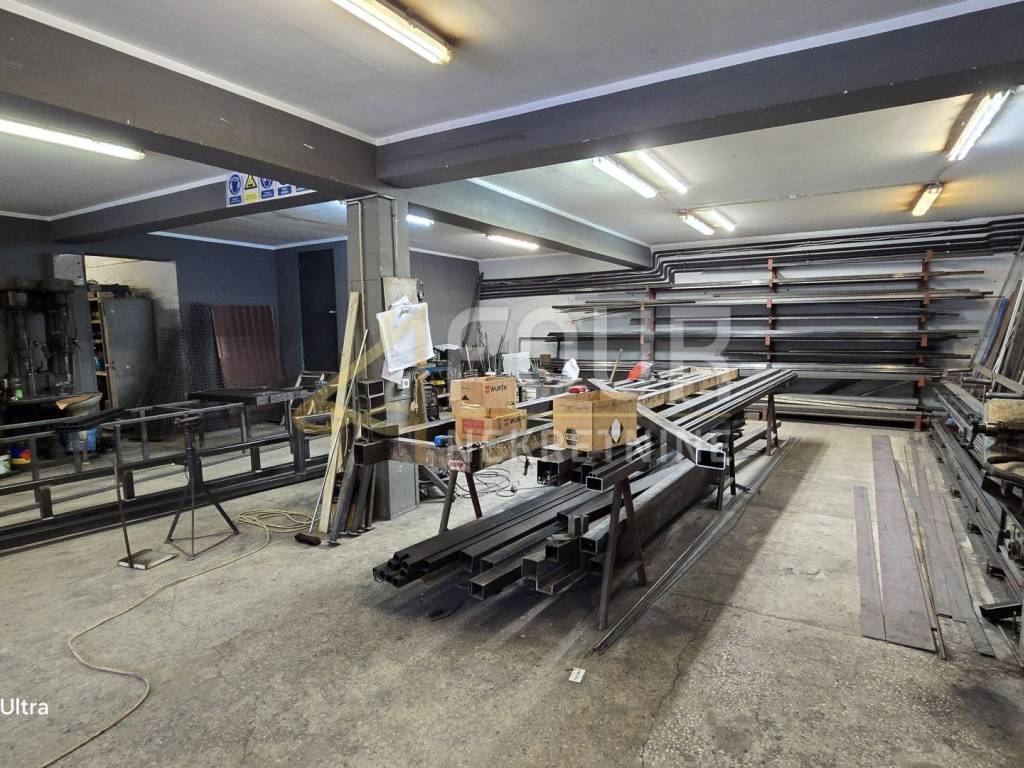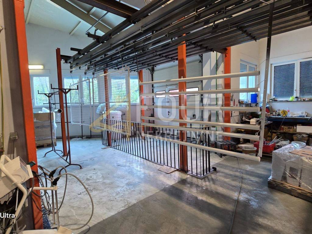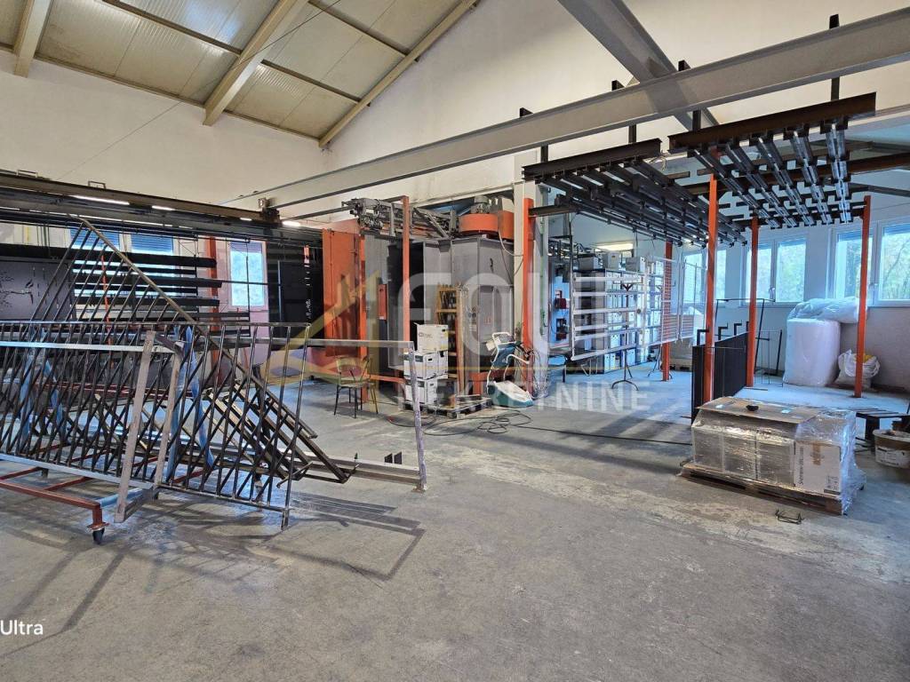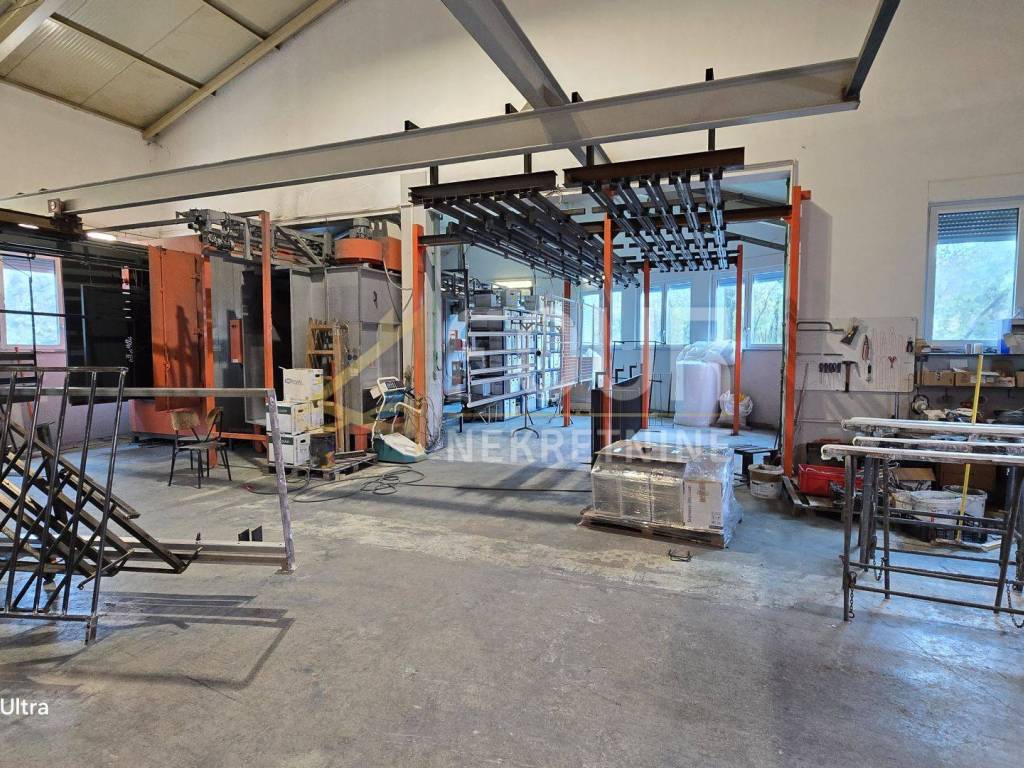 Sie befinden sich im Erdgeschoss und im Untergeschoss und die Deckenhöhen in den Räumen variieren zwischen 8 m und 3 m, was vielfältige Produktionstätigkeiten ermöglicht. Eine der insgesamt drei Produktionshallen mit einer Fläche von 366 m2 ist mit einem Büro von etwa 30 Quadratmetern verbunden. Diese Anlage hat zwei Eingänge, einen größeren (5 m x 5 m) und einen kleineren (3,5 m x 3,5 m) und ist mit einer kompletten Metallplastifizierlinie mit einem 7 m langen Ofen ausgestattet.