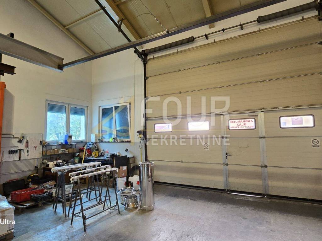 Büroräume zu vermieten mit einer Gesamtfläche von 701,18 m2, perfekt geeignet für eine Schlosserwerkstatt oder Plastifizieranlage. Die Räumlichkeiten bestehen aus drei Produktionshallen, Büroräumen, Grundstücken und Wohnräumen.