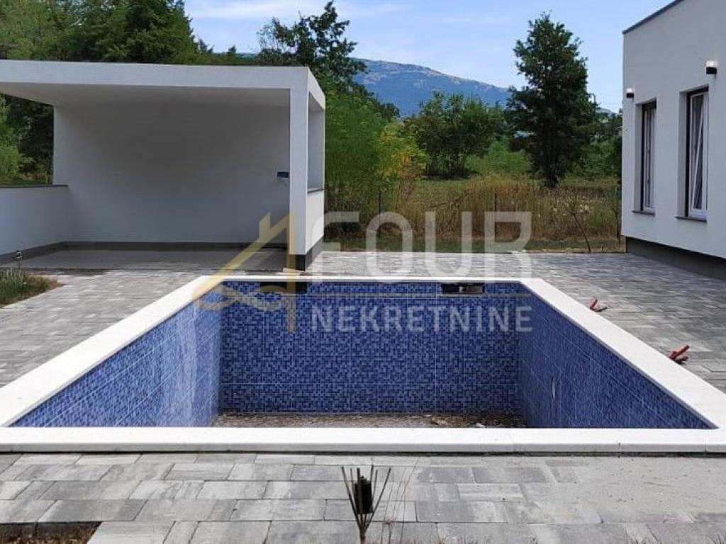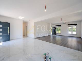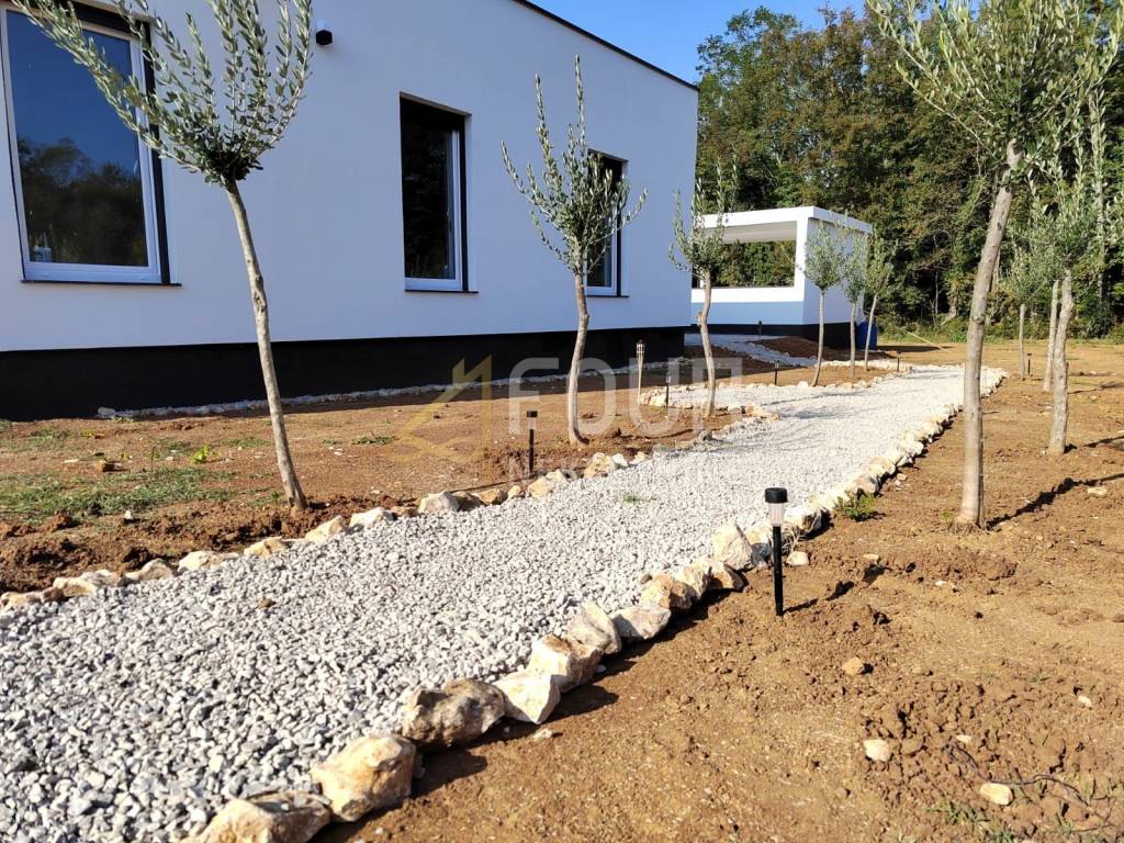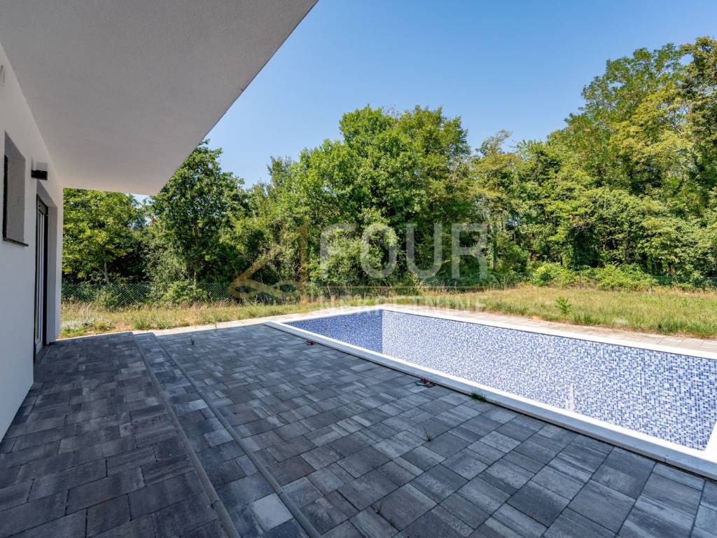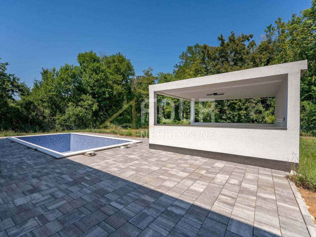 Im Dorf Kršan, unweit von Labin, steht ein modernes Einfamilienhaus mit Swimmingpool zum Verkauf.
