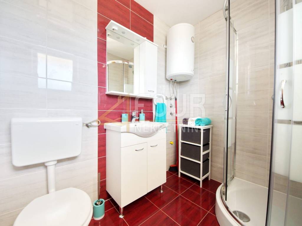 V pritličju se nahaja stanovanje velikosti 58,50 m², ki vključuje eno spalnico, dnevno sobo, kuhinjo in jedilnico, shrambo ter prostorno teraso. V nadstropju je stanovanje velikosti 58,90 m² s dvema spalnicama, dnevno sobo, kuhinjo, jedilnico in balkonom, s katerega se odpira pogled na morje.