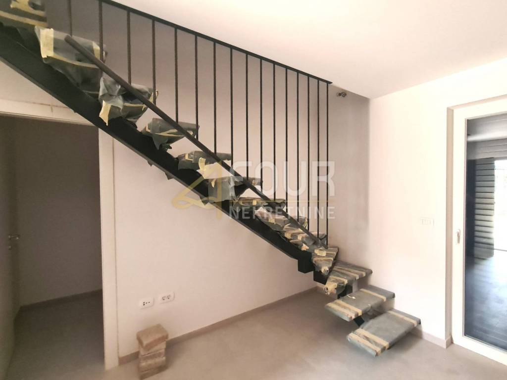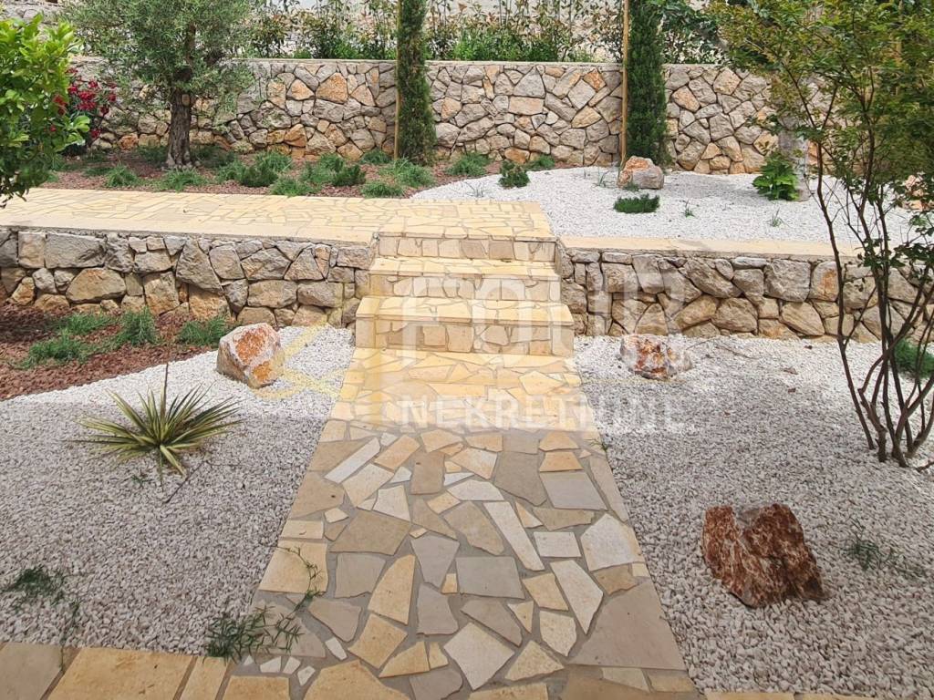 Wir bieten eine luxuriöse zweistöckige Wohnung an, die im Wesentlichen als Doppelhaushälfte mit Garten fungiert und sich in einer hervorragenden Lage befindet – im Zentrum von Cres! Zweistöckige Wohnung – das Haus hat eine Fläche von 131,88 m² und einen angelegten Garten von 104 m². Die untere Etage besteht aus einem geräumigen offenen Wohnzimmer mit Küche und Esszimmer, während sich in der ersten Etage drei Schlafzimmer und ein Badezimmer befinden. Sie befindet sich derzeit in der Phase der Inneneinrichtung – sie wird modern ausgestattet. Zur Ausstattung gehören Aluminiumschreinereiarbeiten und Fußbodenheizung. Zur Immobilie gehören außerdem zwei Parkplätze in der Garage und zwei Abstellräume.