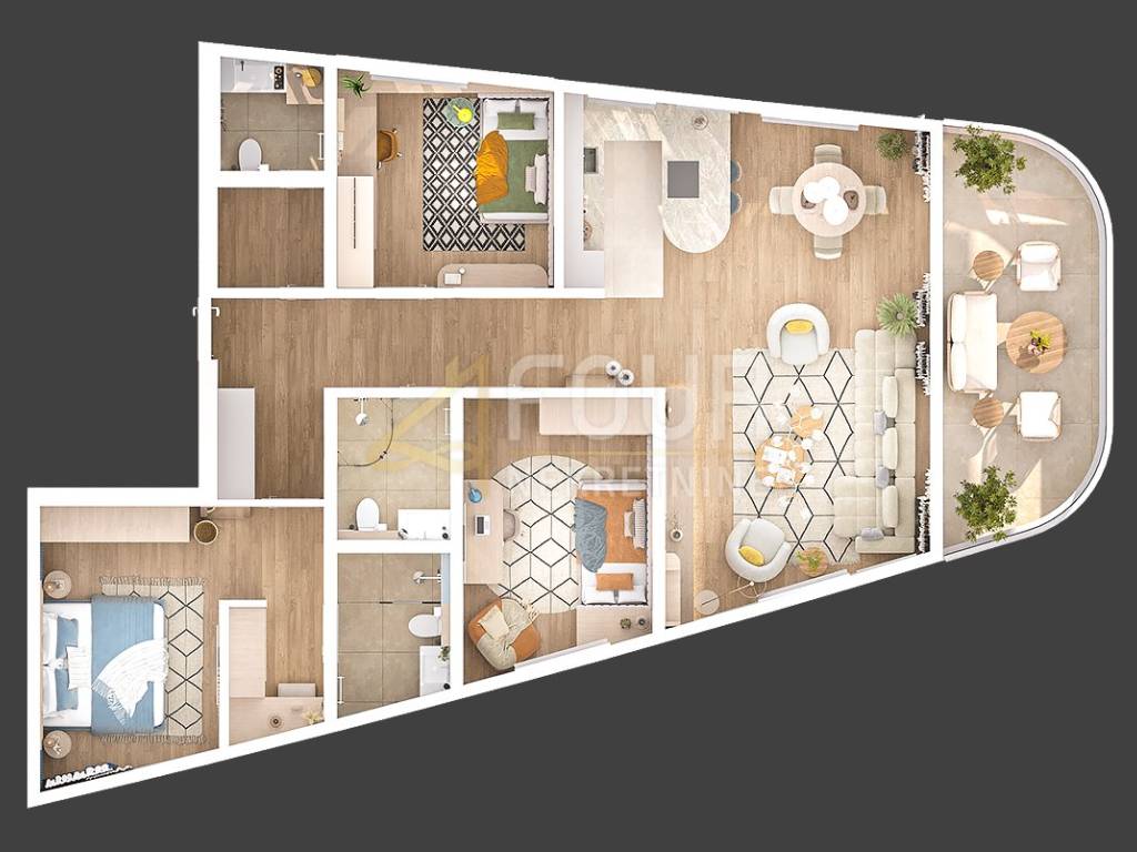 Das Angebot umfasst eine Drei-Zimmer-Wohnung mit Wohnzimmer und einer Gesamtfläche von 123,9 m2 in einem im Bau befindlichen Luxus-Wohnkomplex mit einem geplanten Fertigstellungstermin am 30.06.2025. Die Wohnung befindet sich in einer prestigeträchtigen Lage in Rijeka und verfügt über eine Terrasse mit wunderschönem Meerblick.