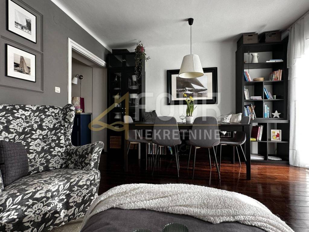 Wohnung zu vermieten in Pećine, perfekt gelegen mit Meerblick. Sie befindet sich in einem sehr gepflegten Wohngebäude mit neuer Fassade und neuem Dach. Sie hat eine Fläche von 63,65 m2, einen Balkon von ca. 5 m2 und eine ausgezeichnete sonnige Ausrichtung. Sie ist voll ausgestattet und bezugsfertig, mit Geräten wie Waschmaschine, Geschirrspüler, Tellern, Bettwäsche und allem, was Sie für ein komfortables Leben brauchen.