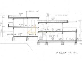 Im Erdgeschoss sind zwei kleinere Wohneinheiten geplant, die aus Wohnzimmer, Esszimmer, Küche, Schlafzimmer und Bad bestehen werden. Im Erdgeschoss ist auch der Eingang für die dritte Wohneinheit geplant. Im 1. Obergeschoss ist eine dritte Wohneinheit geplant, die aus folgenden Räumen bestehen würde: einem Gemeinschaftsraum des Flurs und des Treppenhauses, dann zwei Schlafzimmern mit Balkon und einem Gemeinschaftsbad. Wohnzimmer, Esszimmer und Küche sind in einem separaten Teil geplant mit Zugang zu einer teilweise überdachten Terrasse.