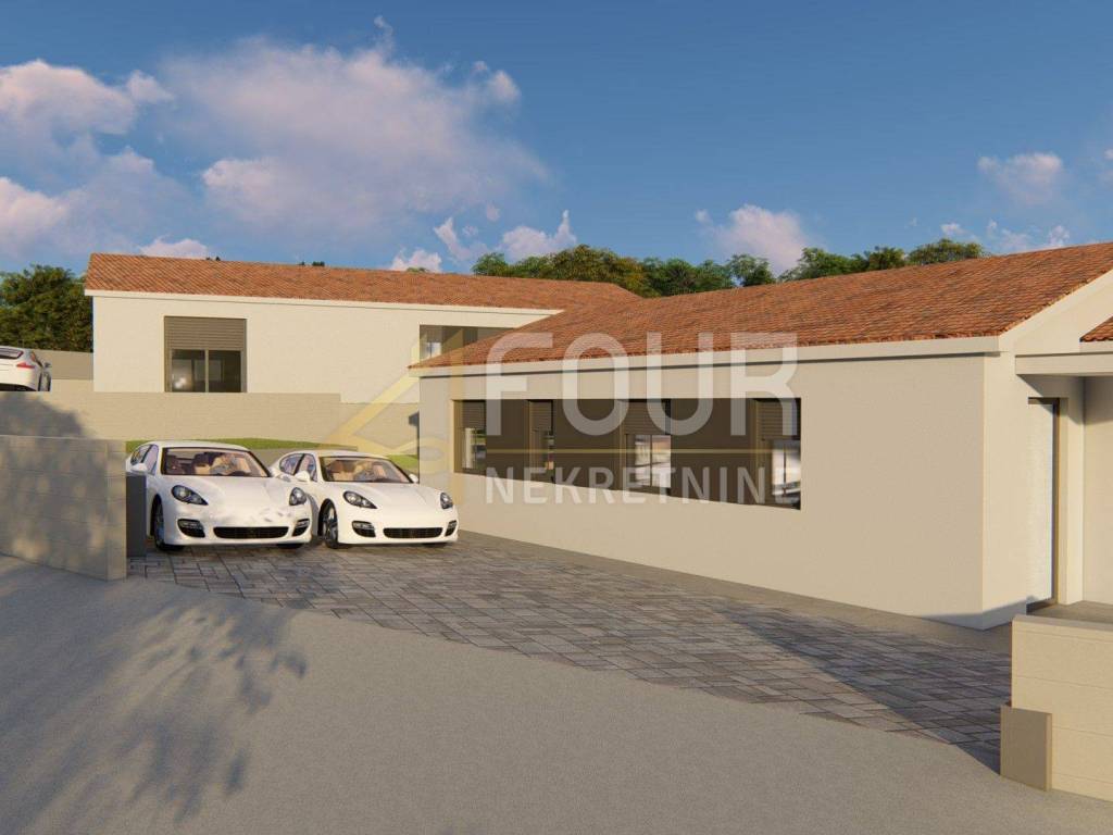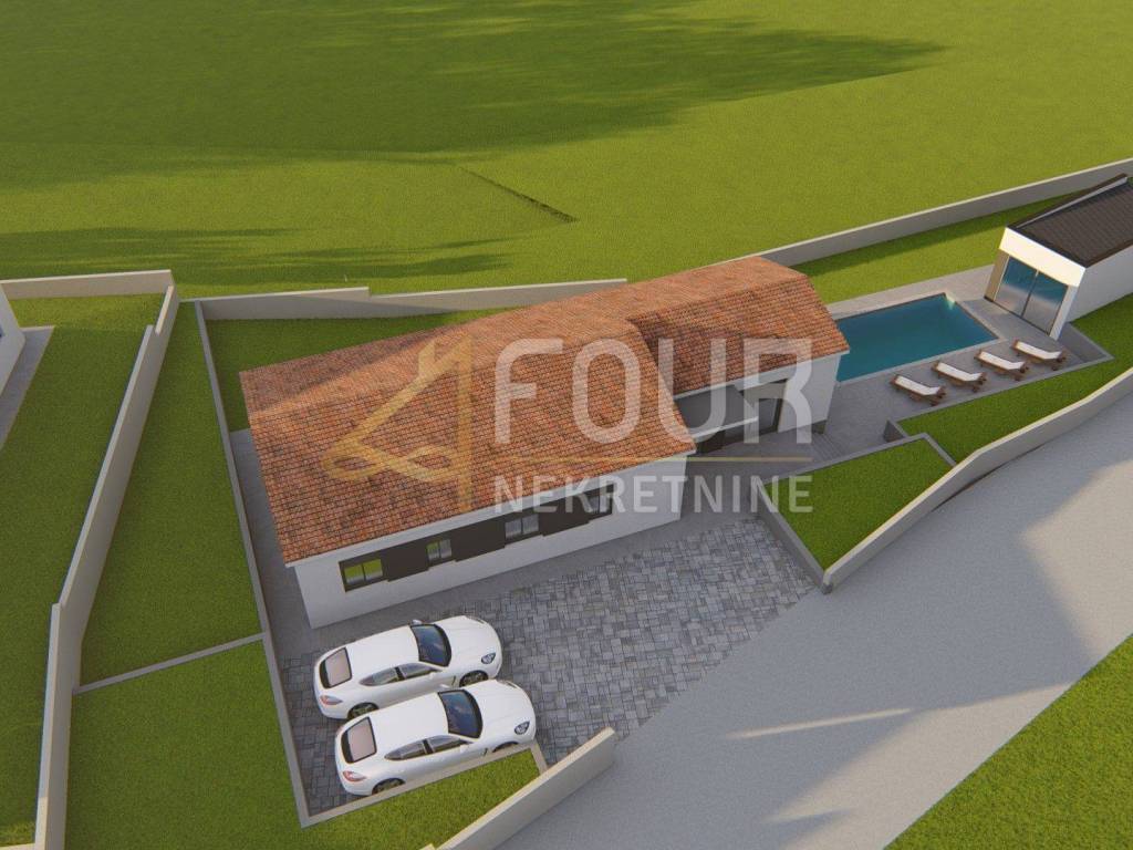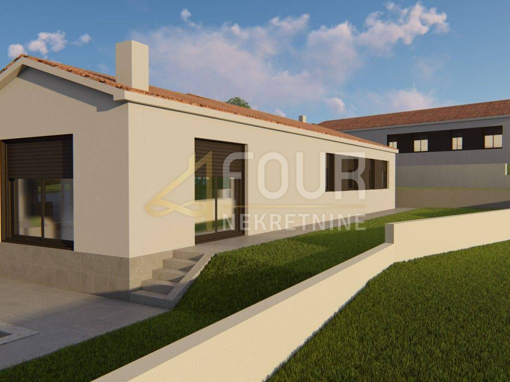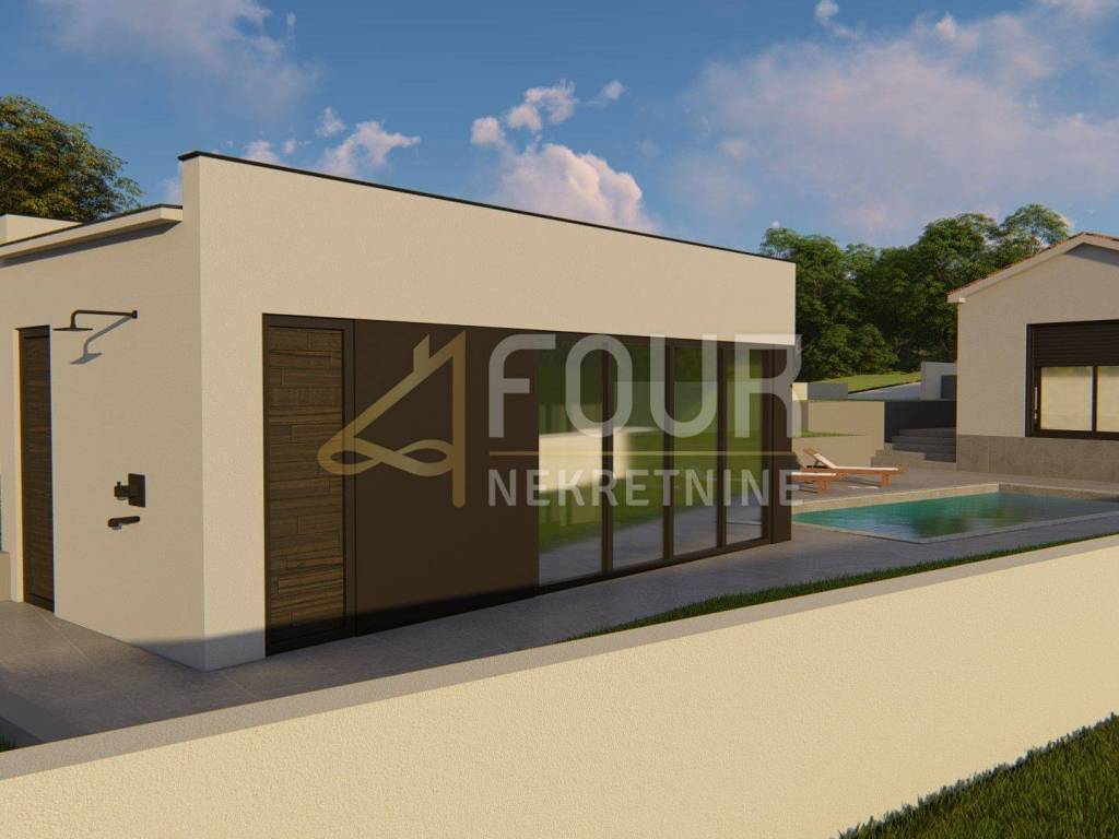 Neubau - modernes ebenerdiges Haus mit Pool auf einem 892m2 großen Grundstück in ruhiger Lage. Nach dem Projekt hat das Haus 130,10m2 und besteht aus einer Küche mit Esszimmer und Wohnzimmer in einem offenen Raum mit Zugang zum Garten und Pool, vier Schlafzimmern mit eigenen Badezimmern und einem weiteren Badezimmer. Neben dem Haus ist auch ein Nebengebäude von etwa 20m2 geplant - Sommerküche mit WC. Parkplätze werden ebenfalls zur Verfügung gestellt.