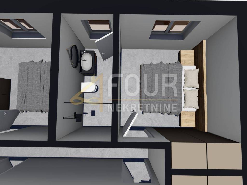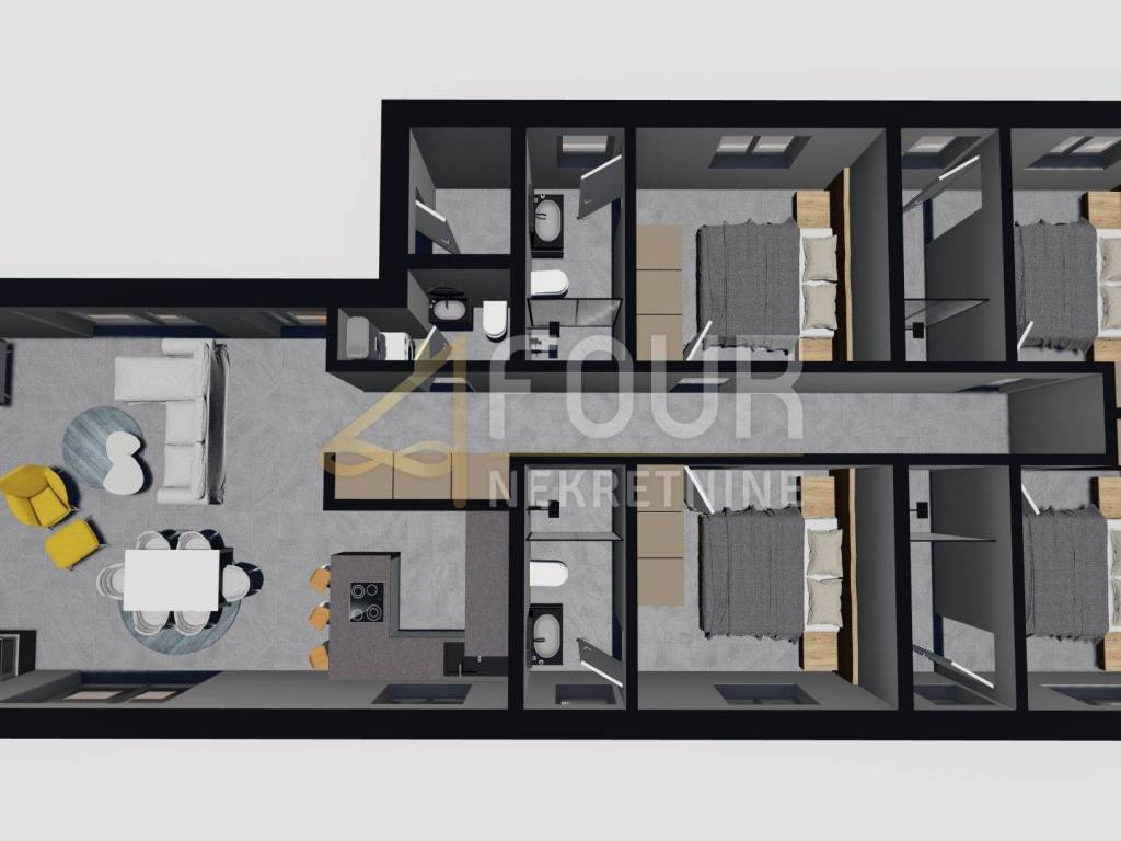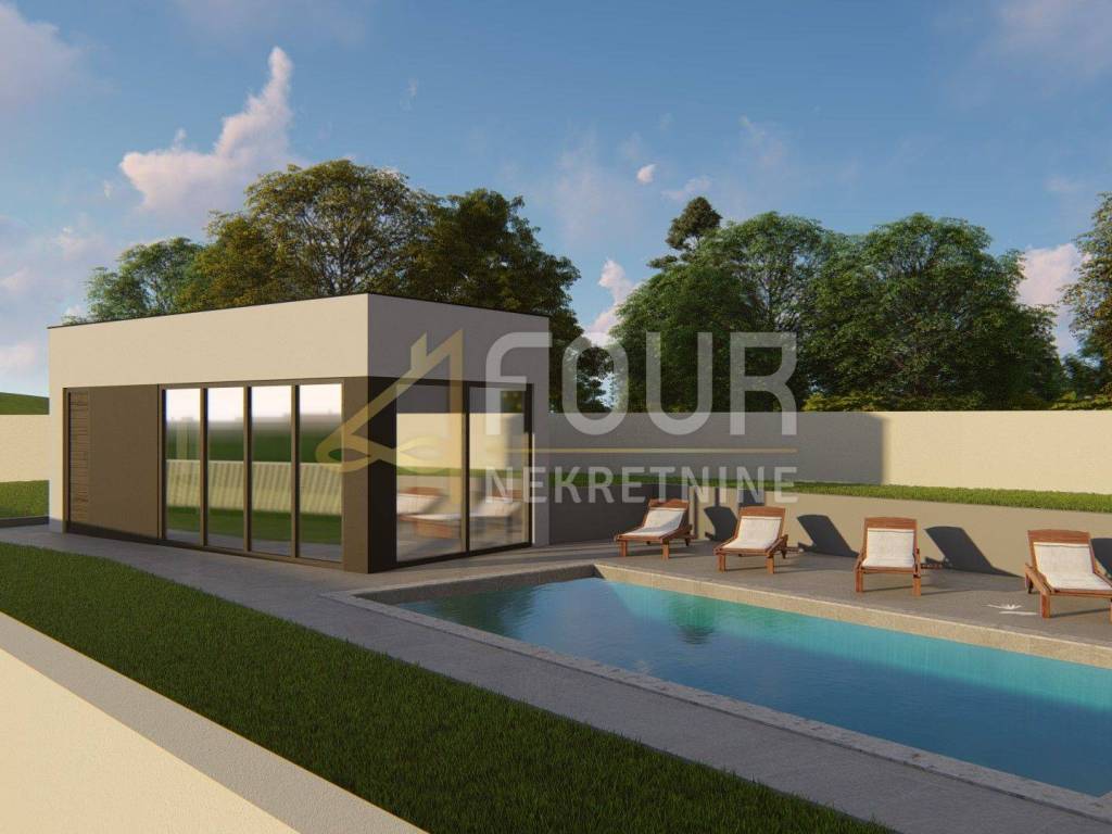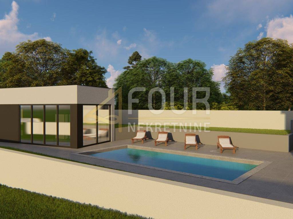 Neubau - modernes ebenerdiges Haus mit Pool auf einem 892m2 großen Grundstück in ruhiger Lage. Nach dem Projekt hat das Haus 130,10m2 und besteht aus einer Küche mit Esszimmer und Wohnzimmer in einem offenen Raum mit Zugang zum Garten und Pool, vier Schlafzimmern mit eigenen Badezimmern und einem weiteren Badezimmer. Neben dem Haus ist auch ein Nebengebäude von etwa 20m2 geplant - Sommerküche mit WC. Parkplätze werden ebenfalls zur Verfügung gestellt.