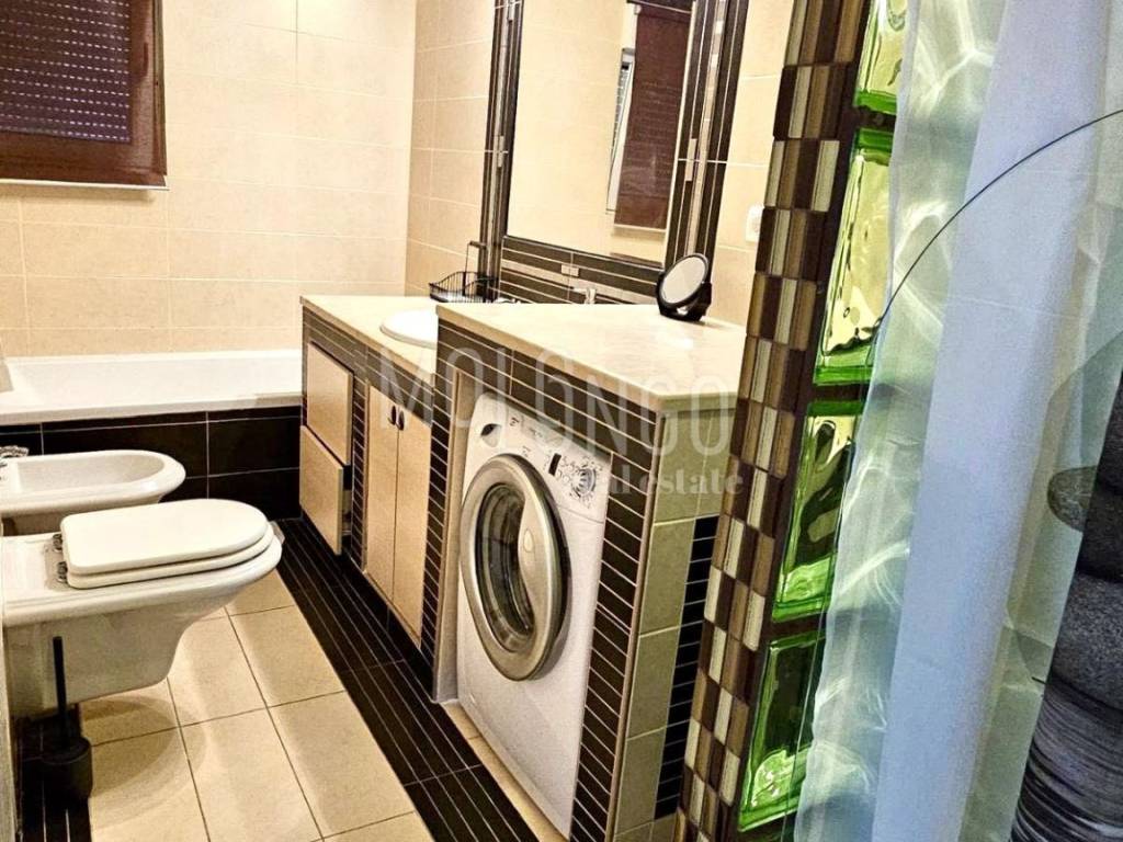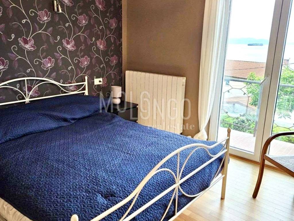 Die 120 m² große Etage befindet sich im ersten Stock eines Einfamilienhauses in der begehrten Lage von Bivio. Sie verfügt über einen separaten Eingang und liegt im mittleren Teil des Hauses. Die Südausrichtung sorgt den ganzen Tag über für viel natürliches Licht. Vom Wohnzimmer und Balkon aus genießt man einen freien Blick auf das Meer.