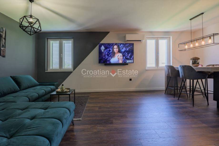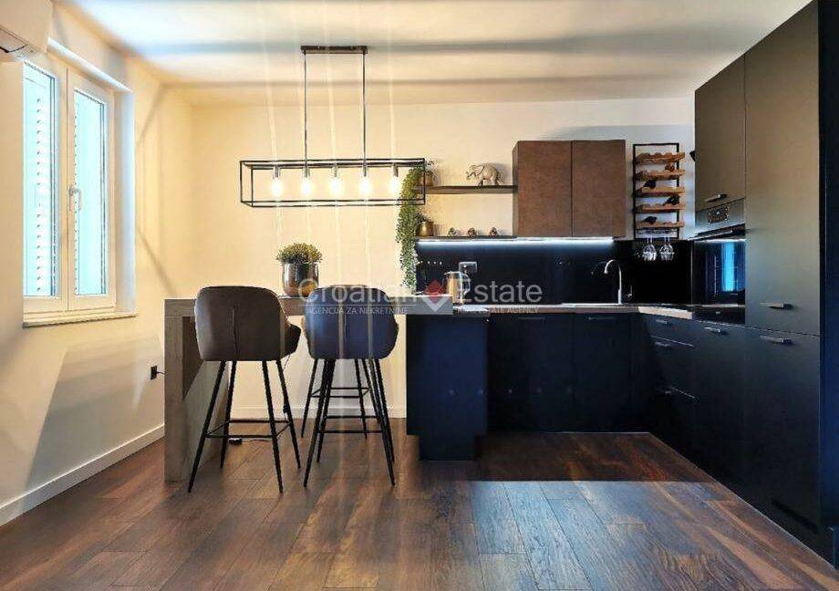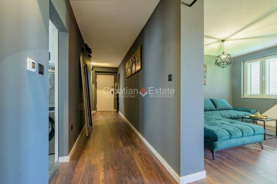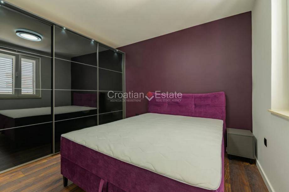 Wir vermieten eine sonnige, komplett renovierte und moderne 63m2 große Zweizimmerwohnung in bester Lage mit herrlichem Blick auf Marjan und die Stadt Split. Die Wohnung befindet sich im vierten Stock eines Gebäudes ohne Aufzug. Sie besteht aus einem Flur, einer Wohnküche, zwei Schlafzimmern und einem Badezimmer mit Fußbodenheizung. Ein Holzschuppen gehört ebenfalls zur Wohnung.