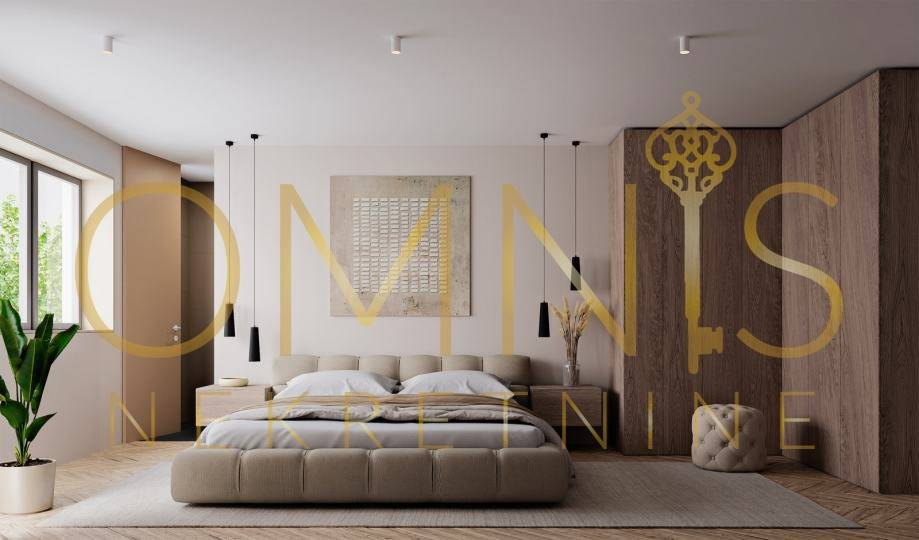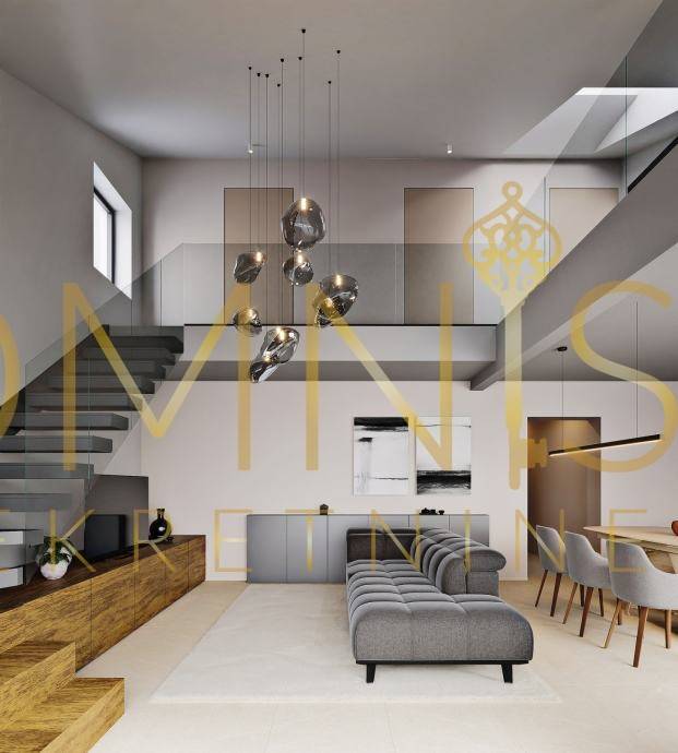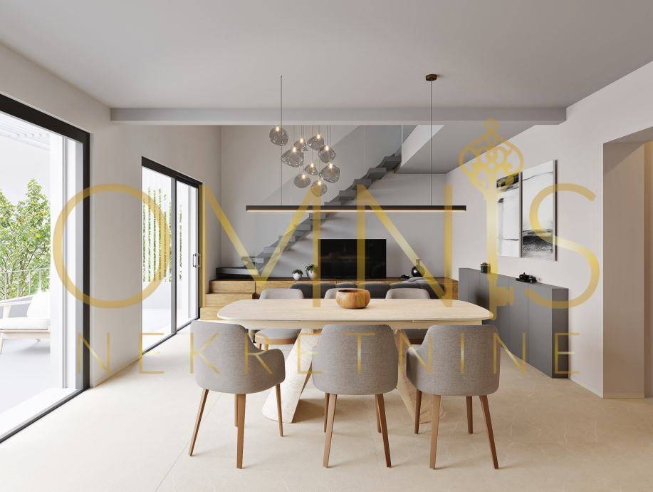Sastoji se od tri spavaće sobe, otvorenog koncepta kuhinje s blagovaonicom i dnevnog dijela, zatim praonice, garderobe, spremišta, galerije, dvije kupaonice te zasebnog toaleta. Iz dnevnog dijela izlazi se na terasu površine 14 m2, a iz galerije na krovnu terasu zaštićenu od pogleda površine 10 m2. Stan je opremljen podnim grijanjem i dizalicom topline za maksimalnu energetsku učinkovitost, ALU stolarijom vrhunske kvalitete te sanitarijama i materijalima visokog standarda.