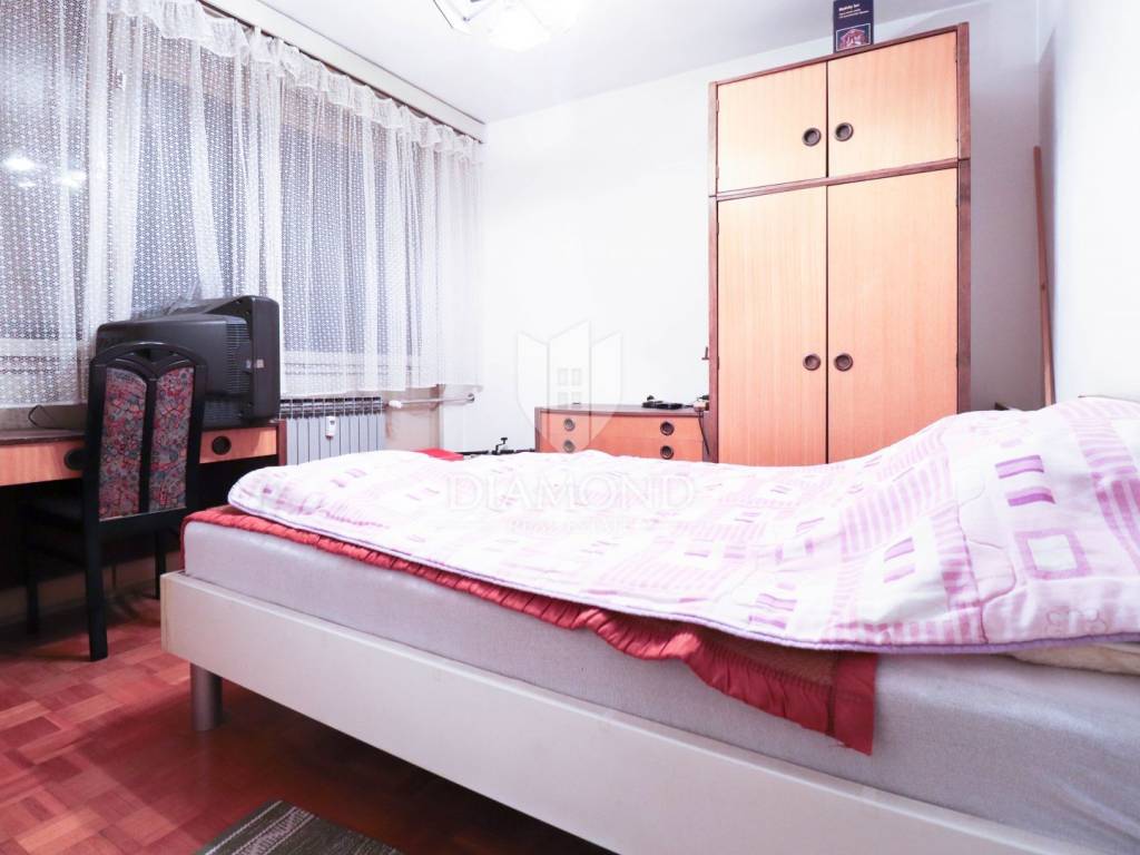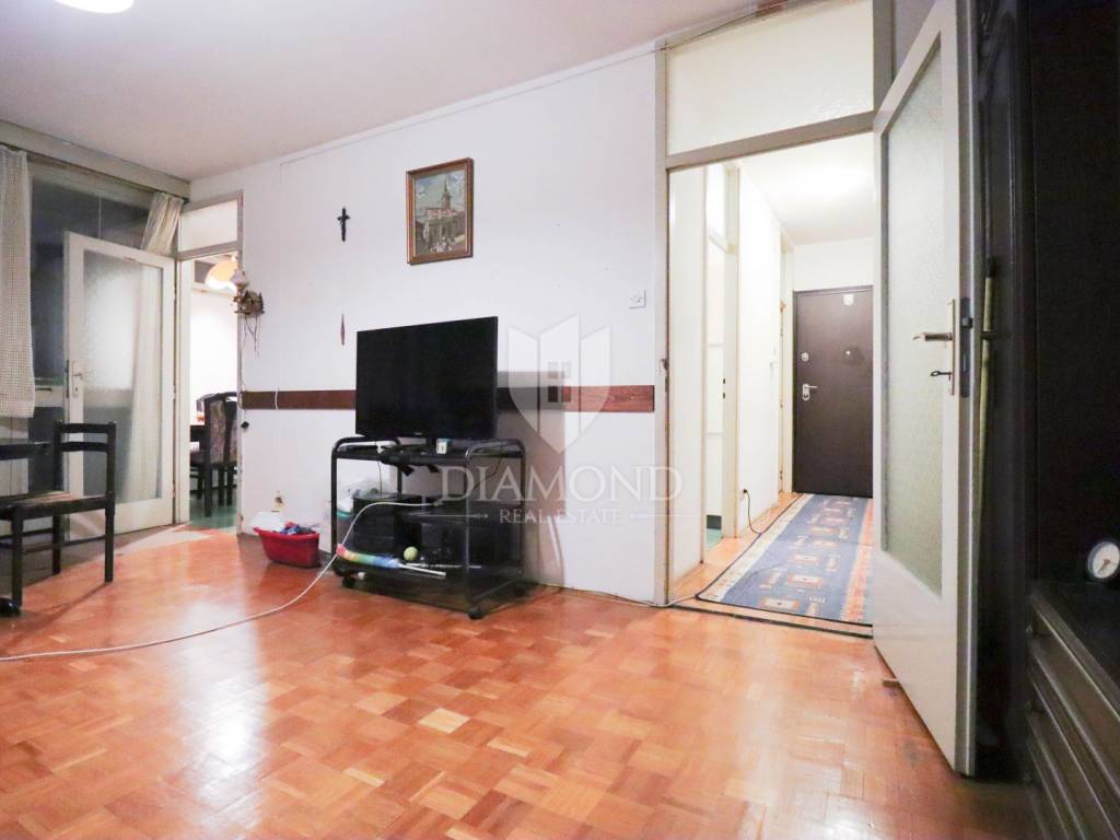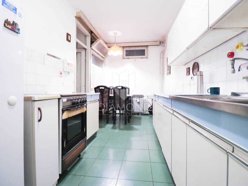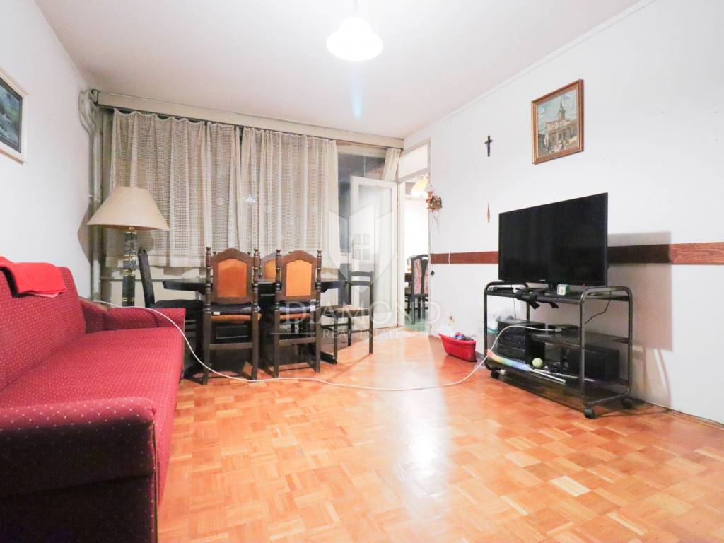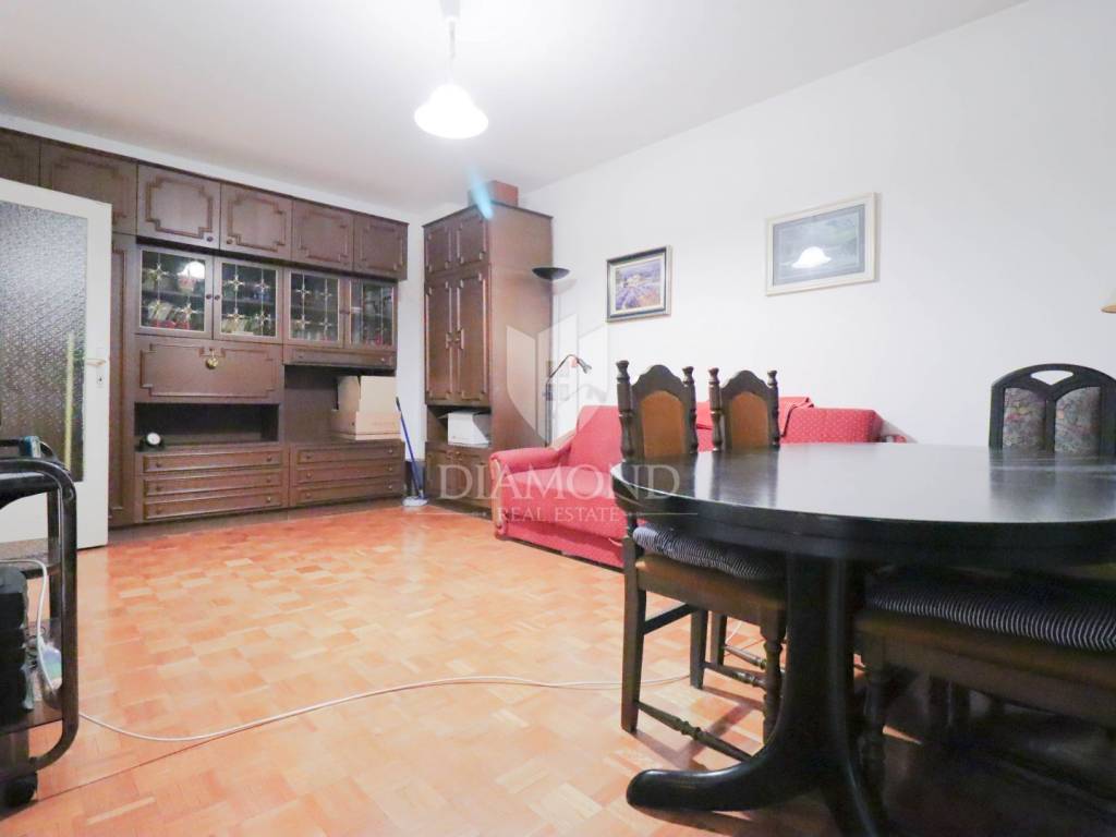 Die Wohnung befindet sich im vierten Stock eines achtstöckigen Wohnhauses, was für eine angenehme Höhe und Ruhe sorgt. Zur Wohnung gehört ein 3 m² großer Abstellraum. Kostenlose öffentliche Parkplätze stehen in der Nähe des Gebäudes zur Verfügung.