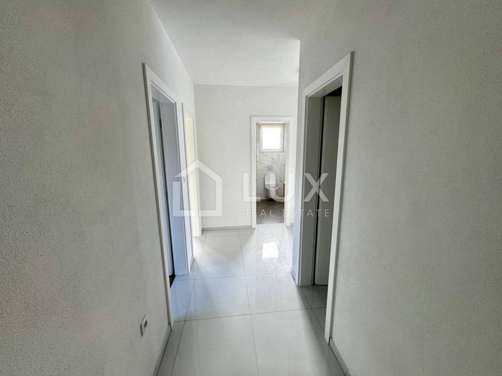Die Wohnung befindet sich im 1. Stock eines kleinen Wohnhauses und besteht aus einem Eingangsbereich, einem offenen Wohnzimmer mit Küche und Essbereich, einem Badezimmer, zwei Schlafzimmern, einem Hauswirtschaftsraum und einer geräumigen Loggia mit Meerblick. Zur Wohnung gehört außerdem ein PKW-Stellplatz. Die Nettofläche der Wohnung mit einberechneter Terrasse und Parkplatz beträgt 61,67m2.