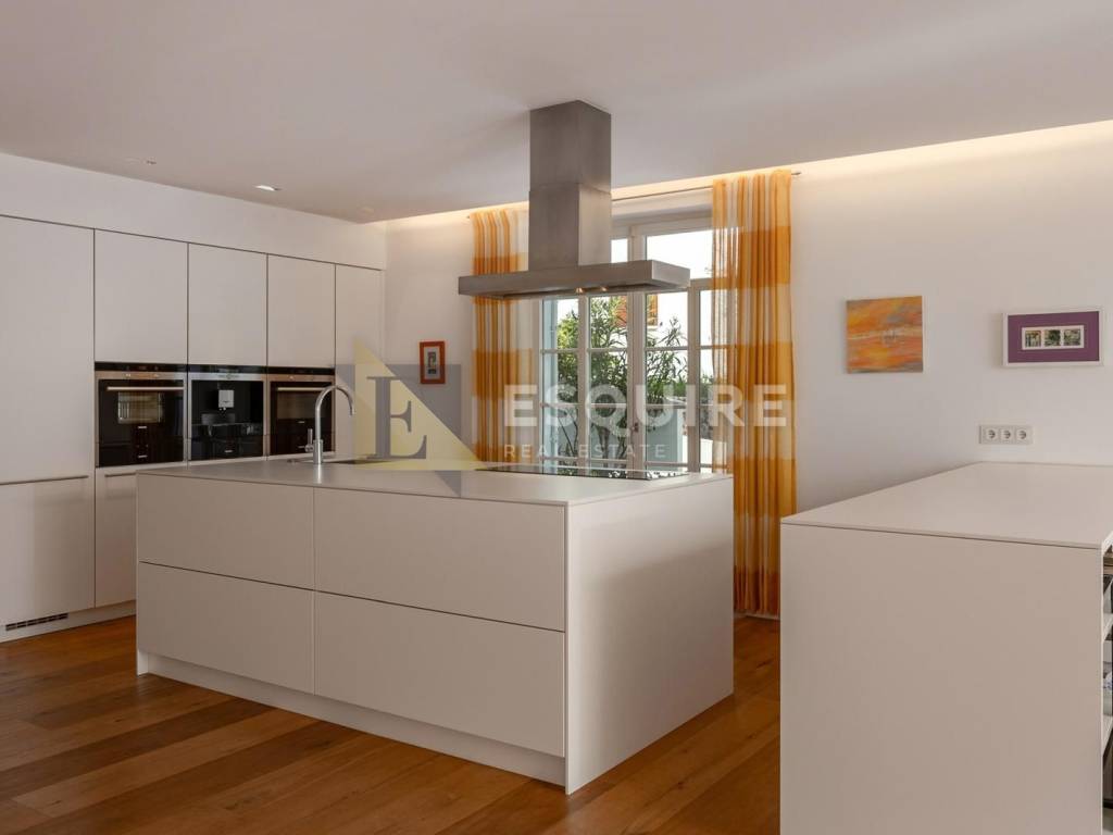 Die Villa erstreckt sich über ein 500 m² großes Grundstück, während die 210 m² sorgfältig gestaltete Wohnfläche helle, luftige Räume mit Meerblick bieten. Ein geräumiges Wohnzimmer mit Kamin, ein Esszimmer und eine moderne Küche bilden einen beeindruckenden offenen Wohnbereich mit direktem Zugang zur Terrasse und zum Garten.