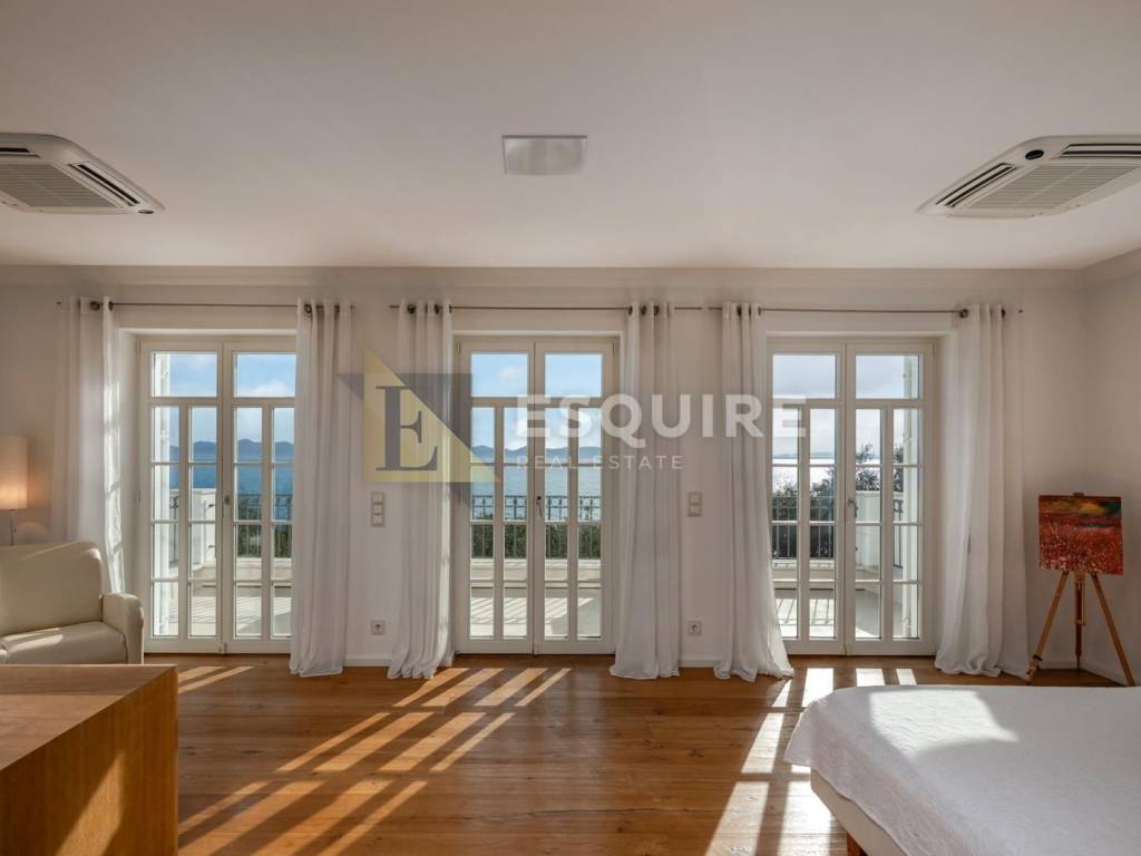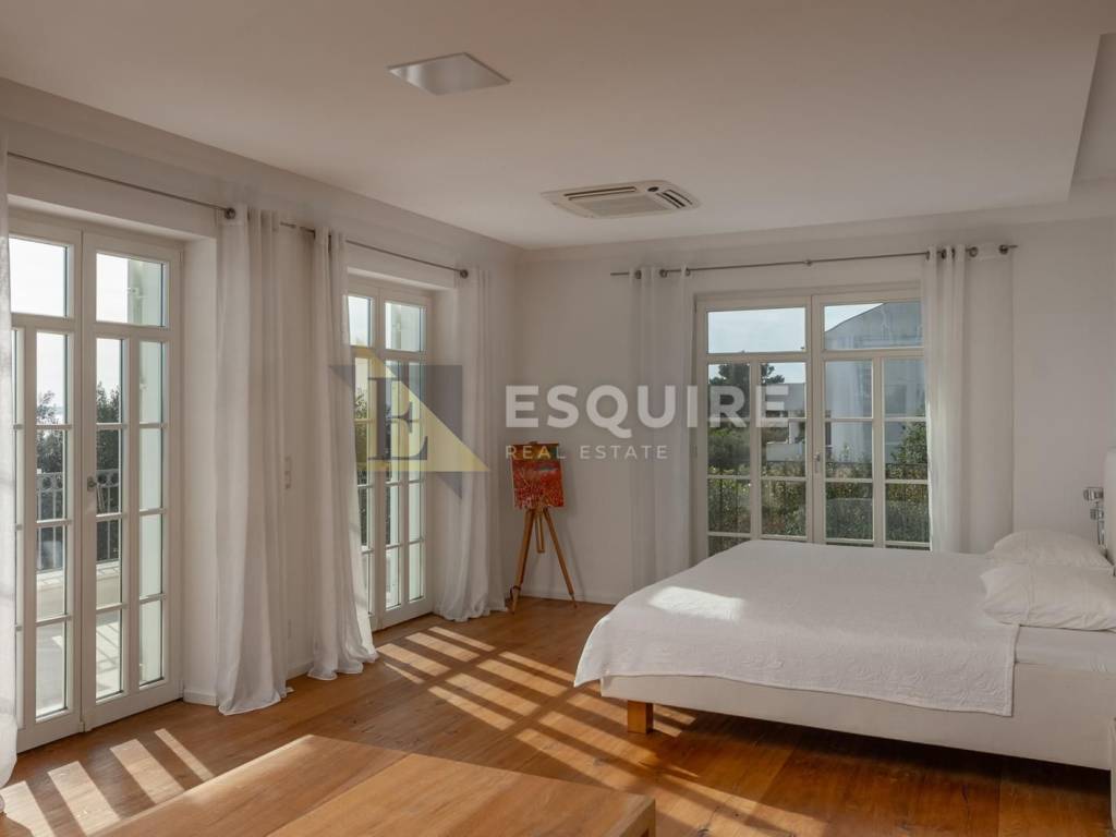 Im ersten Stock befinden sich ein Hauptschlafzimmer mit Ankleidezimmer, eigenem Bad und Sauna sowie zwei weitere Schlafzimmer und ein weiteres luxuriös ausgestattetes Badezimmer. Die großzügige Terrasse bietet einen unverbauten Blick auf das Meer und die vorgelagerten Inseln – ideal, um unvergessliche Sonnenuntergänge zu genießen.