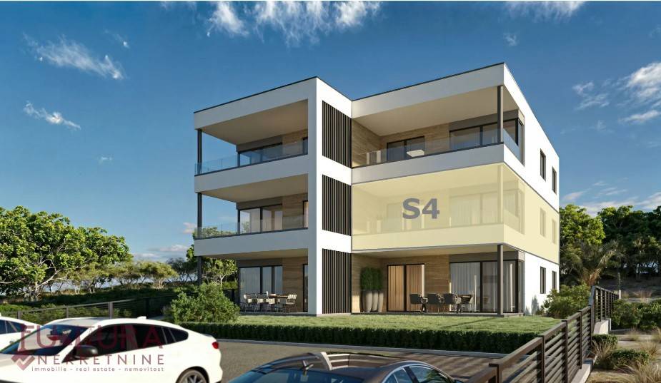 Pag - Mandre, prodaje se dvosobni apartman od 77,50 m2 na prvom katu stambenog objekta sa ukupno šest apartmana u izgradnji, planirano useljenje proljeće 2027 godine. Kvalitetna gradnja, visokokvalitetne pločice u cijelom stanu, kupaonica s tušem i umivaonikom, klima uređaj u svakoj spavaćoj sobi i dnevnom boravku, itd...