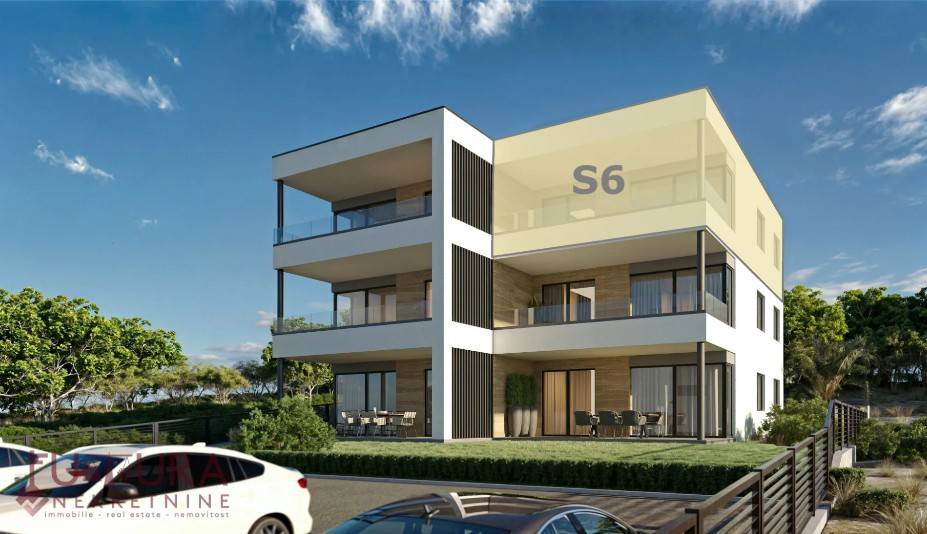 Pag - Mandre, prodaje se dvosobni apartman od 77,50 m2 na drugom katu stambenog objekta sa ukupno šest apartmana u izgradnji, planirano useljenje proljeće 2027 godine. Kvalitetna gradnja, visokokvalitetne pločice u cijelom stanu, kupaonica s tušem i umivaonikom, klima uređaj u svakoj spavaćoj sobi i dnevnom boravku, itd...