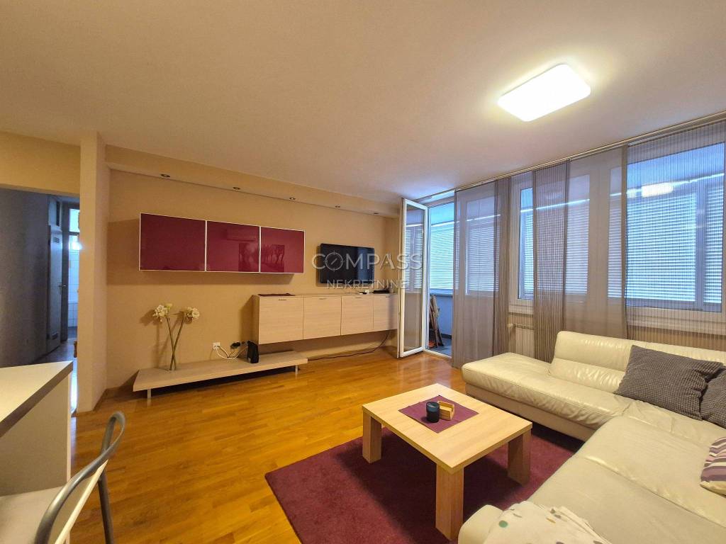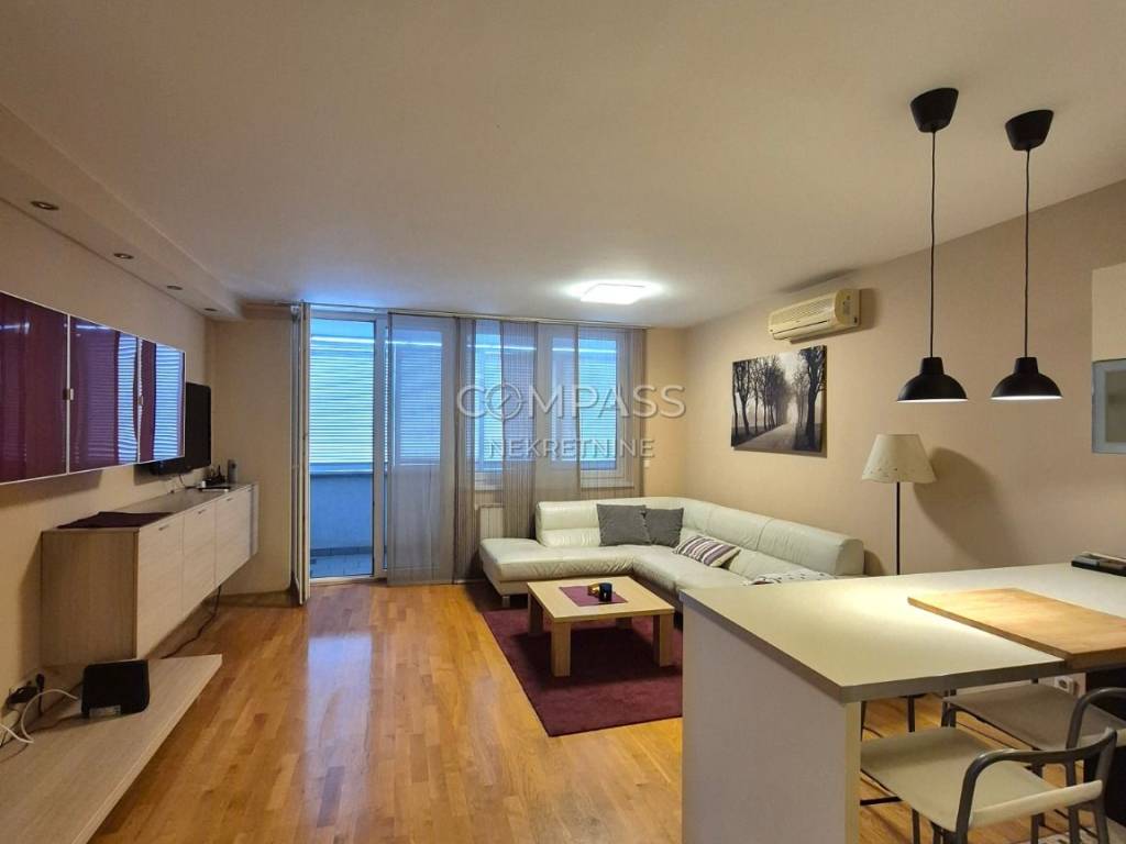 A spacious and bright, fully furnished apartment of 75 m² is available for rent, located on the 2nd floor of a high-quality residential building with an elevator. The apartment offers abundant natural light and consists of two comfortable bedrooms, a large and airy living room connected to the kitchen and dining area, a main bathroom with a toilet, and a separate guest toilet room with a washing machine. The apartment also features a loggia extending along the living room and bedrooms.
