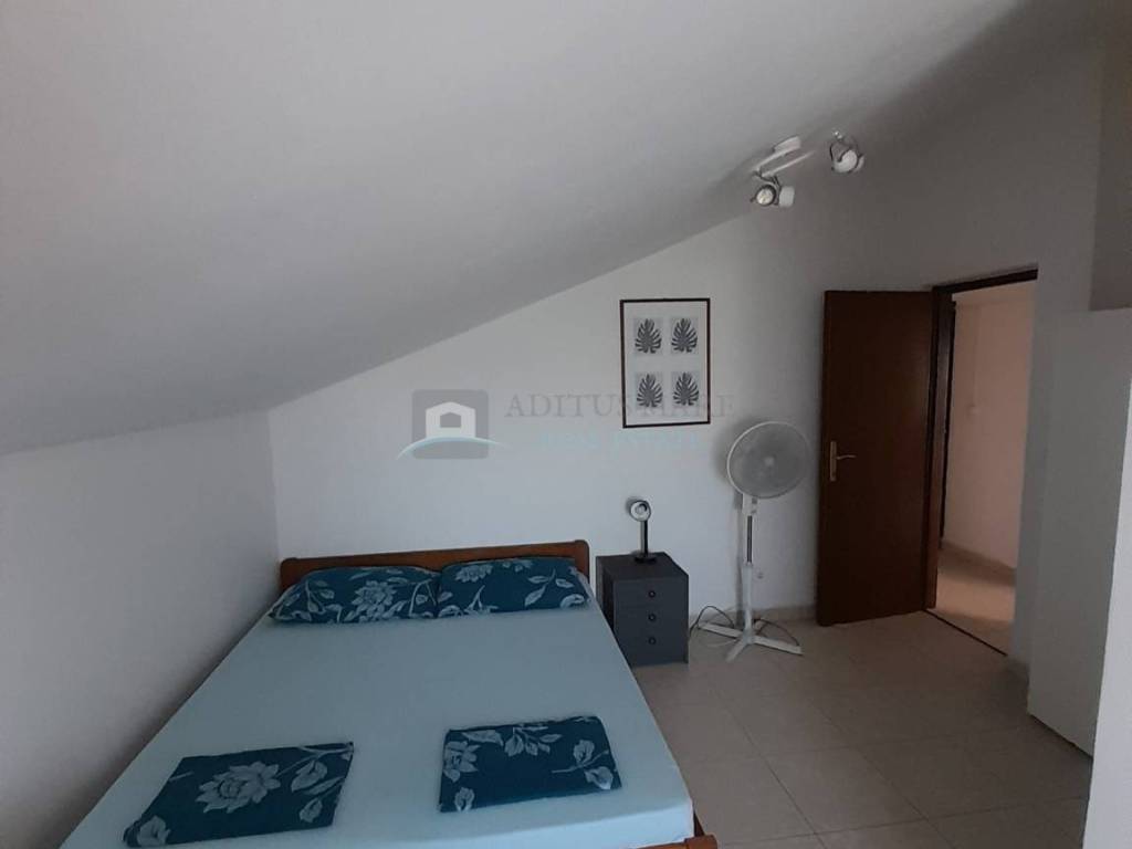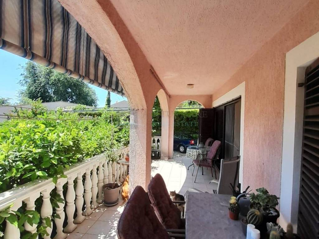 Kuća se prostire na prizemlje, prvi i drugi kat a sastoji se od stana u prizemlju sa izalazom na terasu i prekrasno uređeni vrt. Stan se sastoji od dnevnog boravka, kuhinje sa blagovaonom, jedne spavaće sobe, kupaone, ostave te jednog gostinjsog toaleta.