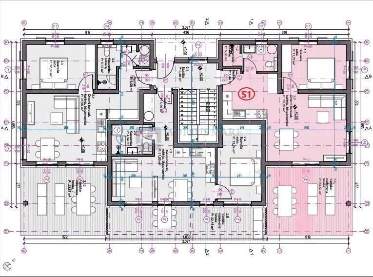 Stan S1 nalazi se u prizemlju i predstavlja savr��enu ravnote��u izme��u suvremenog komfora i privatnosti. Prostrani dnevni boravak s blagovaonicom i kuhinjom otvorenog koncepta obasjan je prirodnim svjetlom zahvaljuju��i velikim staklenim stijenama koje vode na natkrivenu terasu od gotovo 24 m idealno mjesto za jutarnju kavu ili ve��ernje opu��tanje. Spava��a soba povr��ine 11.73 m2, dok moderno ure��ena kupaonica uklju��uje prostor za perilicu rublja.