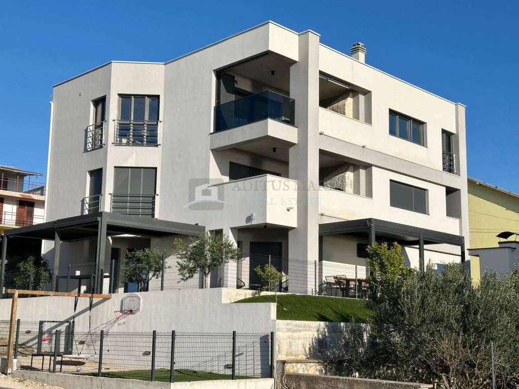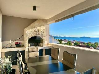 Terasa je jedno od najimpresivnijih obilježja ovog stana s panoramskim pogledom na more i otoke, nudi idealan prostor za opuštanje, sunčanje ili večernje roštiljanje s obitelji i prijateljima. Na terasi se nalazi kvalitetno opremljen roštilj, a zahvaljujući natkrivenom dijelu može se uživati u svim vremenskim uvjetima.