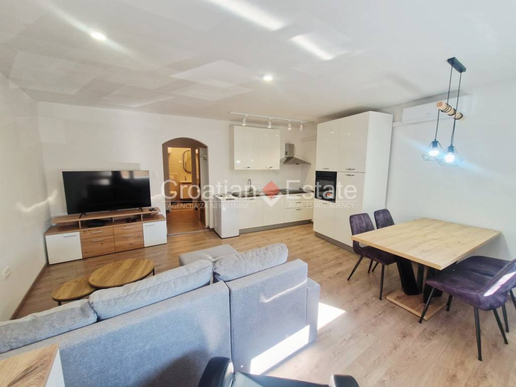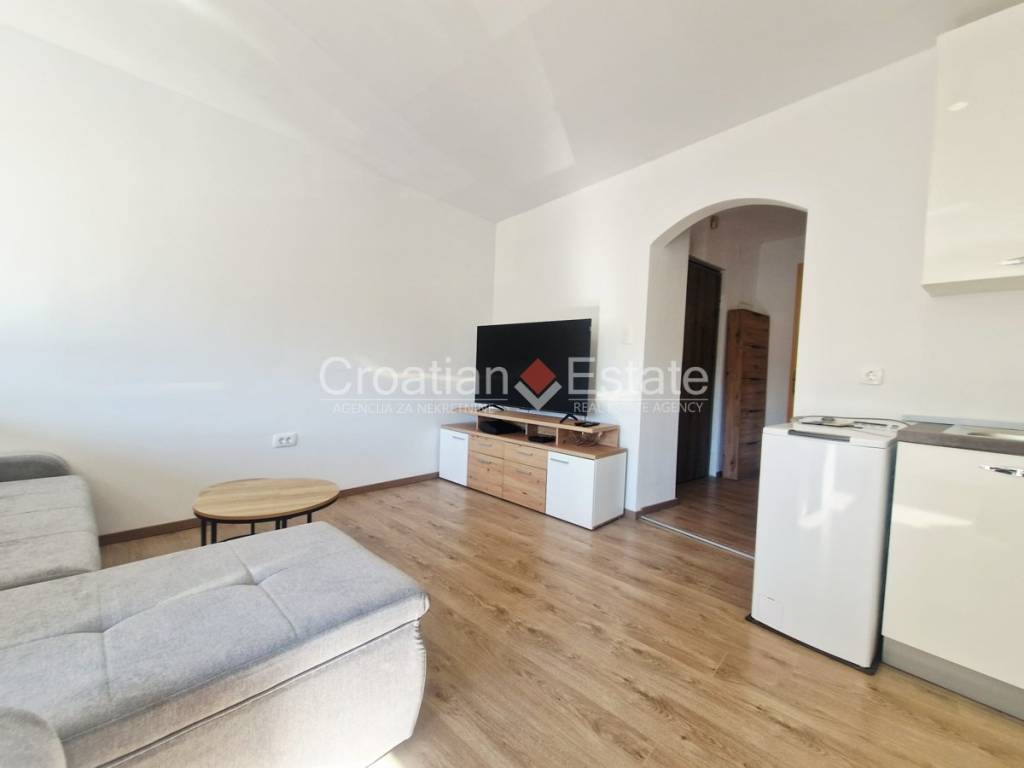 Wir verkaufen eine helle und sonnige Einzimmerwohnung mit einer Wohnfläche von 41,1m2. Sie befindet sich in einer exzellenten Lage, nur wenige Gehminuten vom Diokletianpalast entfernt, im zweiten Stock eines Hauses ohne Aufzug. Die Ausrichtung ist Südost, und sie umfasst eine Küche mit Essecke und Wohnzimmer, ein Schlafzimmer mit einer kleineren geschlossenen Loggia sowie ein Badezimmer.