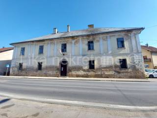 OTOČAC - Ive Senjanina, stambeno-poslovni objekt, zgrada Auto-kluba Otočac, tlocrtne površine 381,25 m2. sastoji se od suterena u kojem su 7 prostorija, skladišta, drvarnica, kupaonica, garaža, dva hodnika i stubište ukupno 254,54 m2. U prizemlju 5 prostorija skladišta, učionica, ured, 2 hodnika, wc, i stubište, ukupno 284,82 m2 što ukupno iznosi 539,36 m2. Zgrada je većim dijelom useljiva i koriste se prostorije, a nekoliko prostorija nije u funkciji. Zgrada ima veliki potencijal za prenamjenu u hostel, turistički objekat s restoranom u podrumu, veliko parkiralište, uredno vlasništvo 1/1.