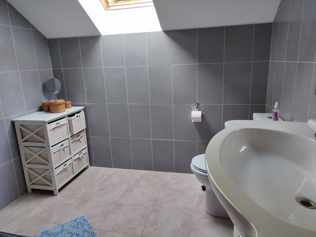 Stepenice za visoko potkrovlje u kojem su 3 spavaće sobe (dvije spavaće sobe imaju izlaz na balkon), radna soba, kupaona i izlaz na veliku terasu u sklopu koje je jedno spremište.