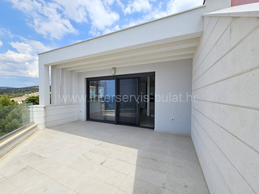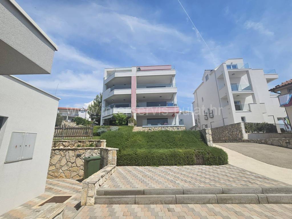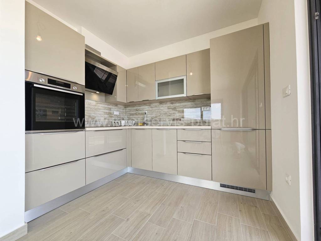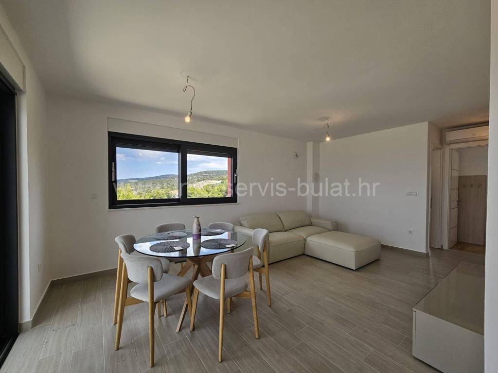 .::: Primošten - Wunderschöne Neubauwohnung mit Garage :::. Die schöne, neu ausgestattete Wohnung in ruhiger Lage in Primošten bietet 90qm Bruttowohnfläche und verfügt über einen Garagenstellplatz von 17qm und einen Abstellraum von 8qm. Sie befindet sich im 3. Stock eines Wohngebäudes mit Aufzug, das 2018 erbaut wurde. Die Raumaufteilung der Wohnung beinhaltet: Flur, Badezimmer, 2 Schlafzimmer mit einer gemeinsamen Terrasse von 12qm, Wohnzimmer mit Küche und Essbereich mit Zugang zur Südterrasse von 18qm mit außergewöhnlichem Meerblick. Die Wohnung ist mit neuen (ungenutzten) Möbeln, einer Einbauküche mit allen Geräten, Fußbodenheizung im Wohnzimmer und Badezimmer sowie drei Klimaanlagen ausgestattet. Der schöne Strand Raduča ist nur 270m entfernt, zum Zentrum von Primošten sind es 500m. Eine Besichtigung der Immobilie ist nach vorheriger Absprache und Terminbuchung (zwei Tage im Voraus) möglich. Bitte geben Sie bei der Kontaktaufnahme unbedingt die ID-Nummer an. Wir freuen uns auf Ihren Anruf.