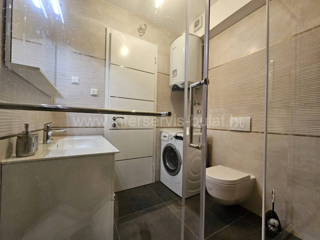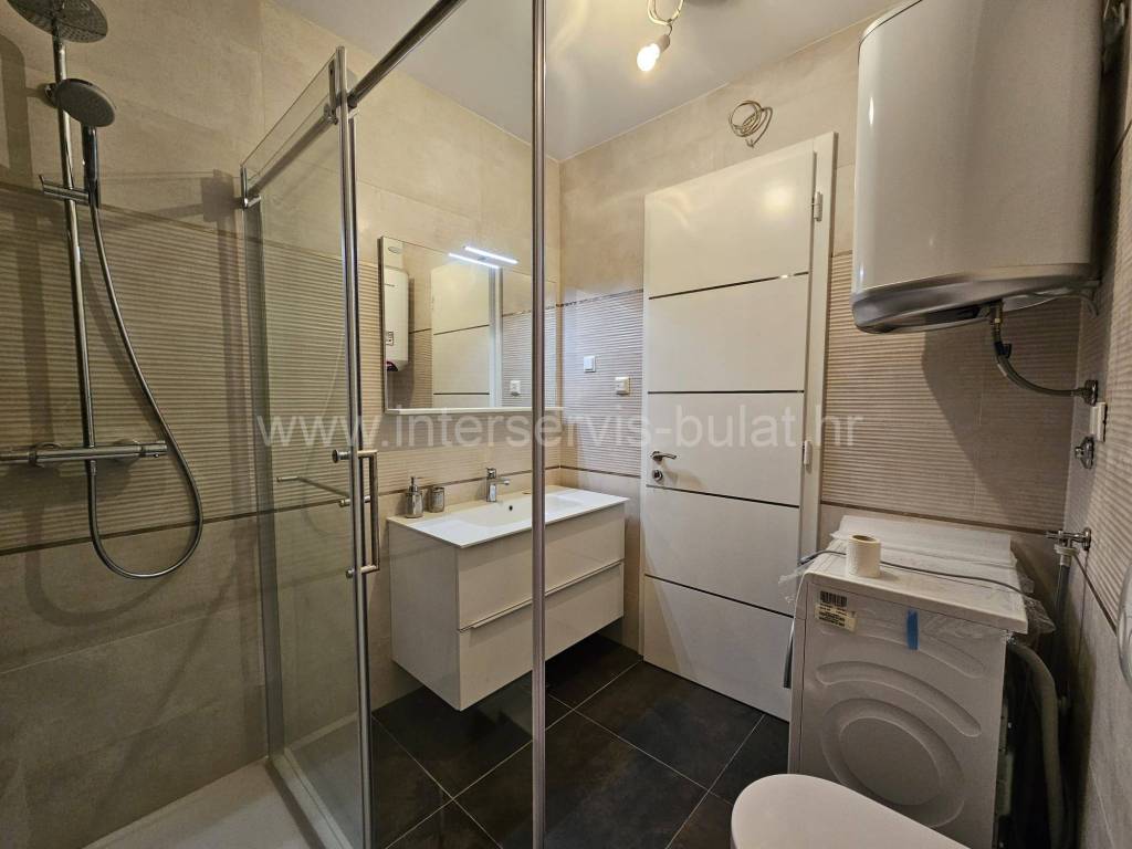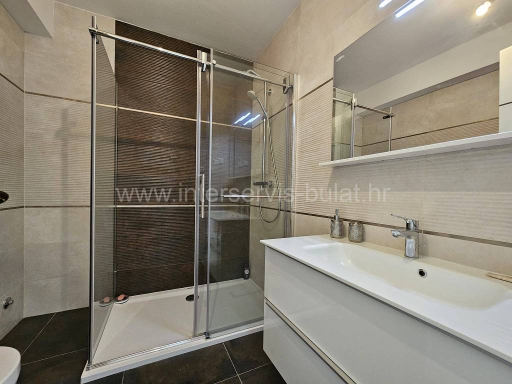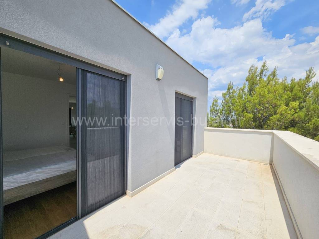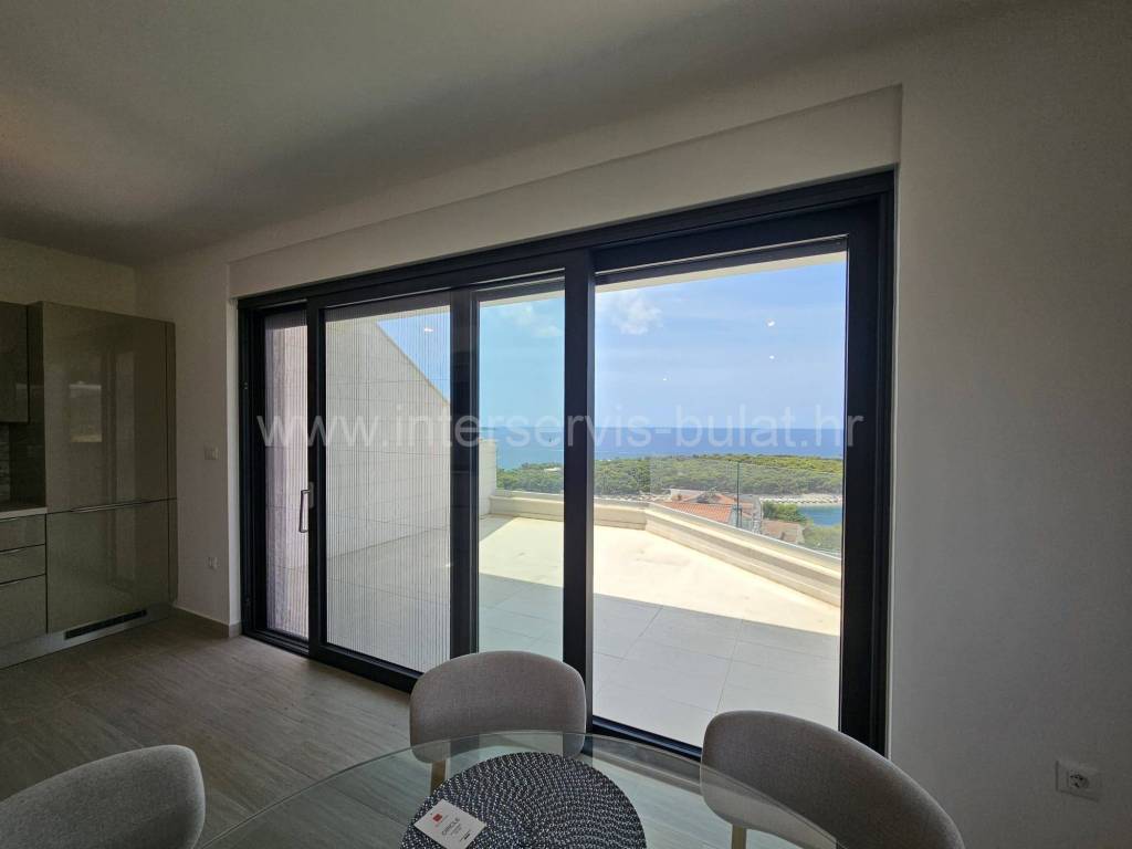 .::: Primošten - Wunderschöne Neubauwohnung mit Garage :::. Die schöne, neu ausgestattete Wohnung in ruhiger Lage in Primošten bietet 90qm Bruttowohnfläche und verfügt über einen Garagenstellplatz von 17qm und einen Abstellraum von 8qm. Sie befindet sich im 3. Stock eines Wohngebäudes mit Aufzug, das 2018 erbaut wurde. Die Raumaufteilung der Wohnung beinhaltet: Flur, Badezimmer, 2 Schlafzimmer mit einer gemeinsamen Terrasse von 12qm, Wohnzimmer mit Küche und Essbereich mit Zugang zur Südterrasse von 18qm mit außergewöhnlichem Meerblick. Die Wohnung ist mit neuen (ungenutzten) Möbeln, einer Einbauküche mit allen Geräten, Fußbodenheizung im Wohnzimmer und Badezimmer sowie drei Klimaanlagen ausgestattet. Der schöne Strand Raduča ist nur 270m entfernt, zum Zentrum von Primošten sind es 500m. Eine Besichtigung der Immobilie ist nach vorheriger Absprache und Terminbuchung (zwei Tage im Voraus) möglich. Bitte geben Sie bei der Kontaktaufnahme unbedingt die ID-Nummer an. Wir freuen uns auf Ihren Anruf.