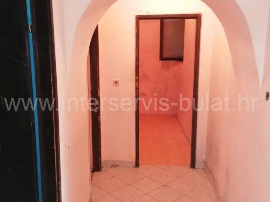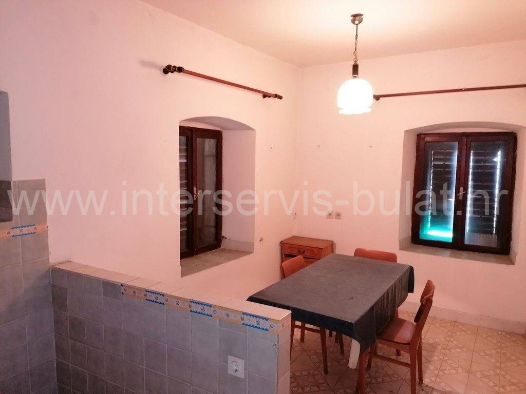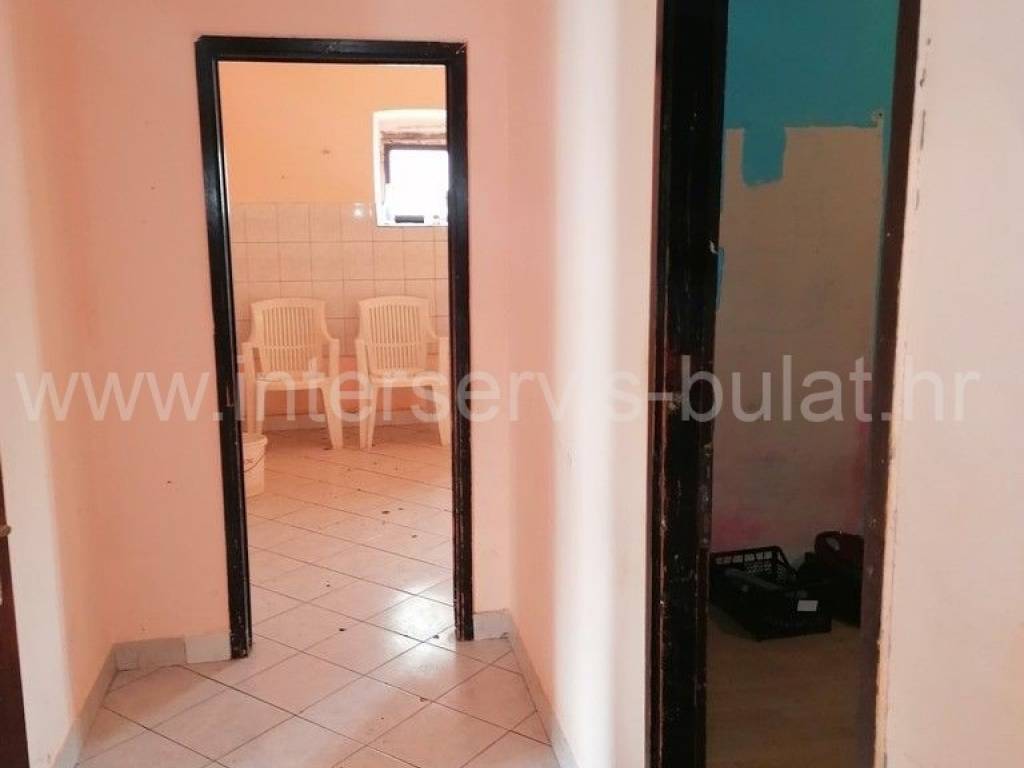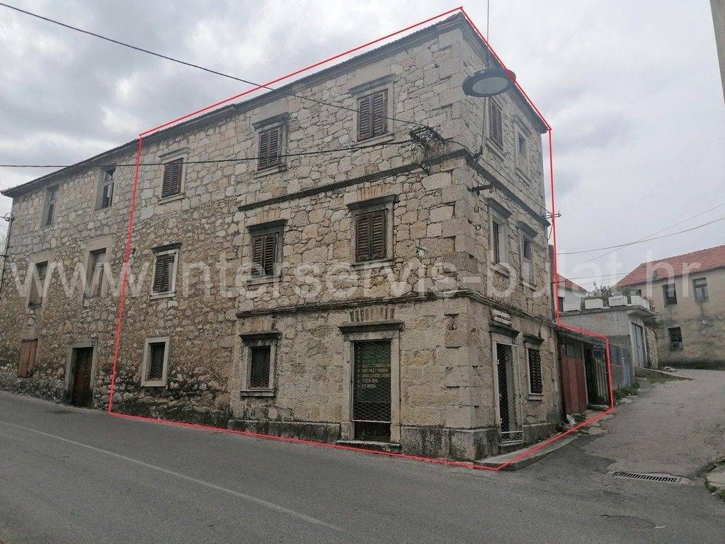 .::: Autohtones Natursteinhaus im Zentrum von Drniš :::. Das Doppelhaus aus Naturstein liegt im Zentrum von Drniš und besteht aus drei Etagen. Im Erdgeschoss befinden sich eine Gewerbefläche, Lagerräume, Toilette und eine Garage mit einer Gesamtfläche von ca. 107 qm. Die Wohnung im ersten Stock verfügt über separaten Eingang und darin befinden sich auf ca. 63qm ein Flur, eine Küche mit Esszimmer, zwei größere Schlafzimmer und ein kleineres Zimmer. Eine Außentreppe führt in den zweiten Stock, mit gleicher Raumaufteilung wie im ersten Stock, jedoch wurde anstelle des kleinen Zimmers ein zusätzliches Badezimmer geschaffen. Das Haus ist komplett zu sanieren, aber seine gute Lage macht es zu einer hervorragenden Immobilie für Geschäfts- und Wohnzwecke. Eine Besichtigung der Immobilie ist nach vorheriger Absprache und Terminbuchung (zwei Tage im Voraus) möglich. Bitte geben Sie bei der Kontaktaufnahme unbedingt die ID-Nummer an. Wir freuen uns auf Ihren Anruf.