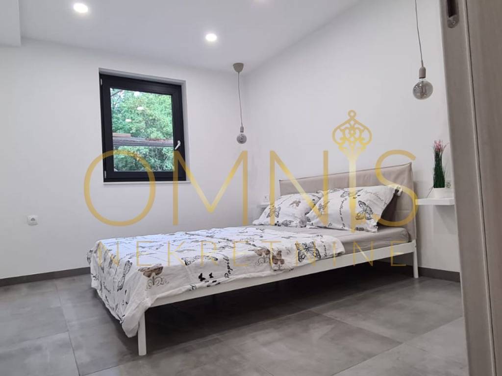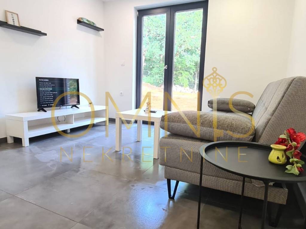 Prodajemo stan u novogradnji u prizemlju zgrade. Sastoji se od jedne spavaće sobe, dnevnog boravka s kuhinjom, hodnika te kupaonice s wc-om. Stan je uređen i namješten te se kao takav i prodaje. Također stanu pripada i jedno parkirno mjestoi okućnica na korištenje. odlična nekretnina na rijetkoj i traženoj lokaciji. Idealno za iznajmljivanje, no opet pogodno za stanovanje.