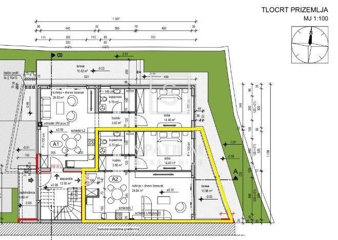 Die Wohnung mit der Bezeichnung „A2“ befindet sich im Erdgeschoss und verfügt über eine Nettowohnfläche von 63,23 m² (inkl. Nebenkosten). Sie zeichnet sich durch einen funktionalen und durchdachten Grundriss aus, der Folgendes umfasst: