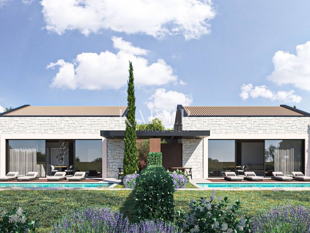 In einer ruhigen und begehrten Wohngegend nahe Poreč, nur wenige Fahrminuten von der Stadt und dem Meer entfernt, entsteht ein Projekt mit zwei modernen Doppelhaushälften. Diese sind als zwei separate Wohneinheiten konzipiert und legen besonderen Wert auf Privatsphäre, Funktionalität und einen modernen Lebensstil.