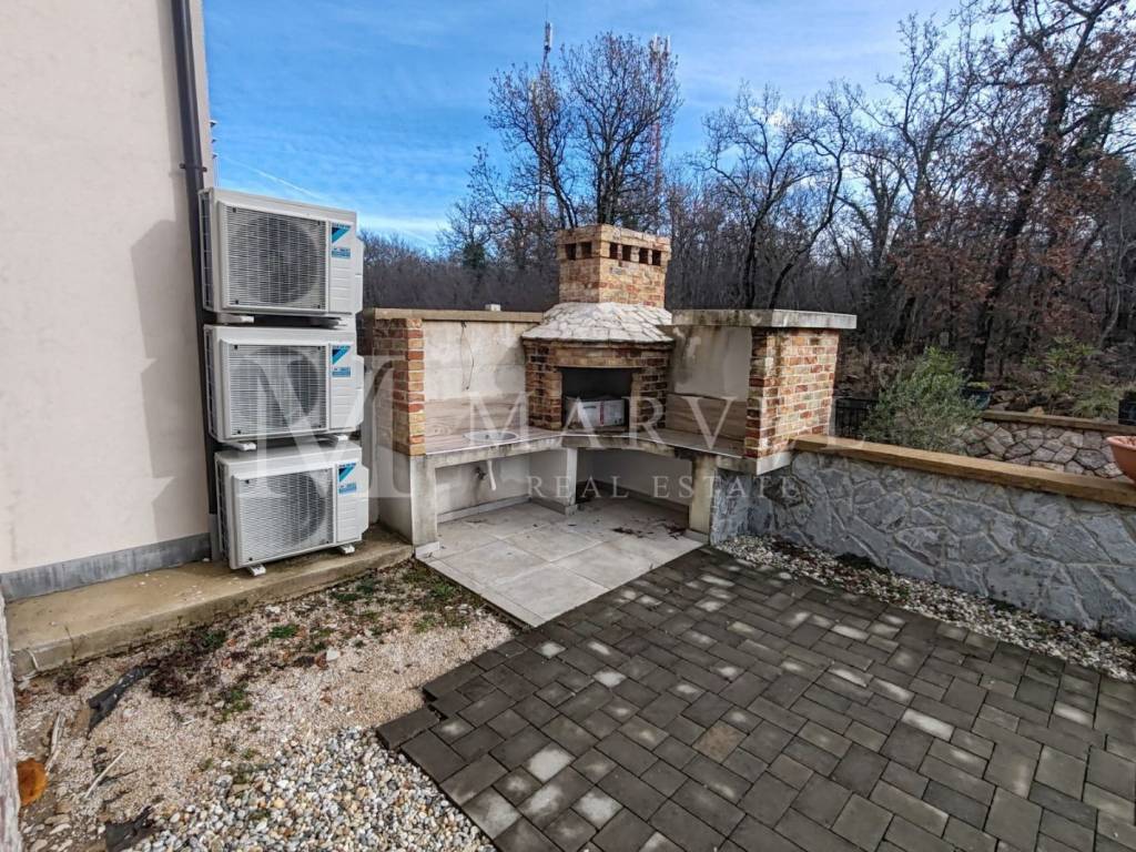 Vom Wohnbereich gelangt man auf eine überdachte Terrasse mit 10 m, die zusätzlichen Komfort für den Aufenthalt im Freien bietet. Zur Wohnung gehört außerdem ein gepflasterter Gartenbereich mit einer Fläche von 66 m, der sich hinter der Wohnung befindet und über einen Kamin verfügt, was Privatsphäre und Nutzung während des ganzen Jahres ermöglicht.