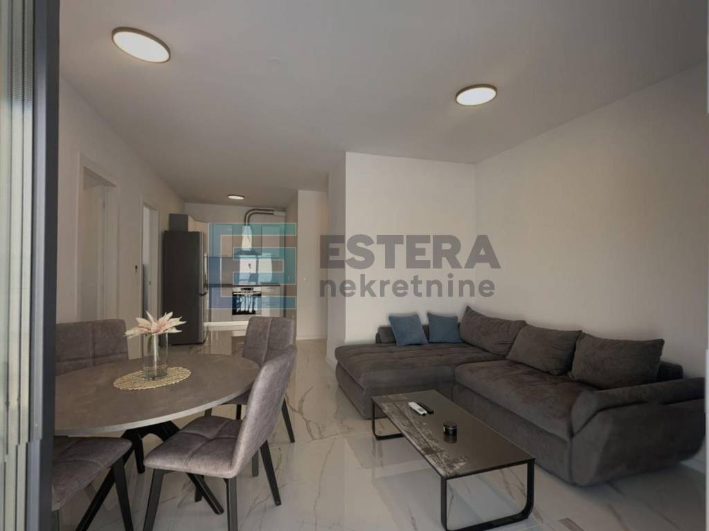 Stan se nalazi na drugom katu i sastoji se od: ulaznog hodnika, dnevnog boravka sa kuhinjom i blagovaonicom, kupaonice, tri sobe, stambene površine 57,76 m2 i terase od 49,23 m2, s ukupnom prodajnom površinom od 70,07 m2. Stan je u potpunosti namješten i ovo je prvi najam. Uz stan dolazi i garažno parkirno mjesto.