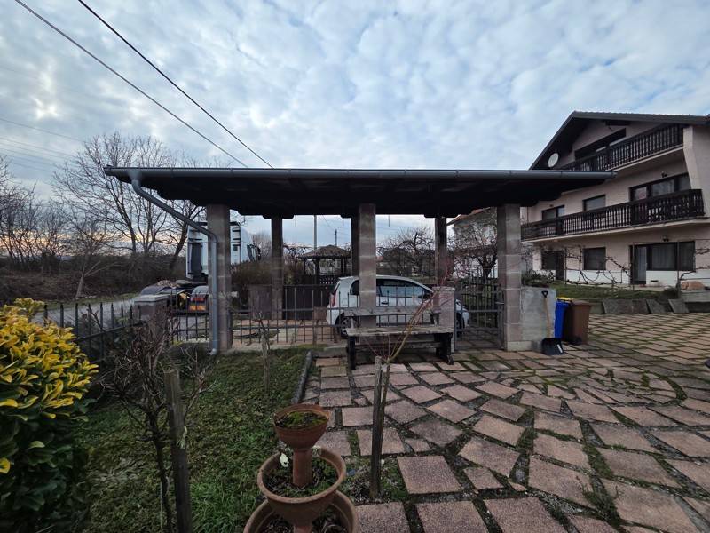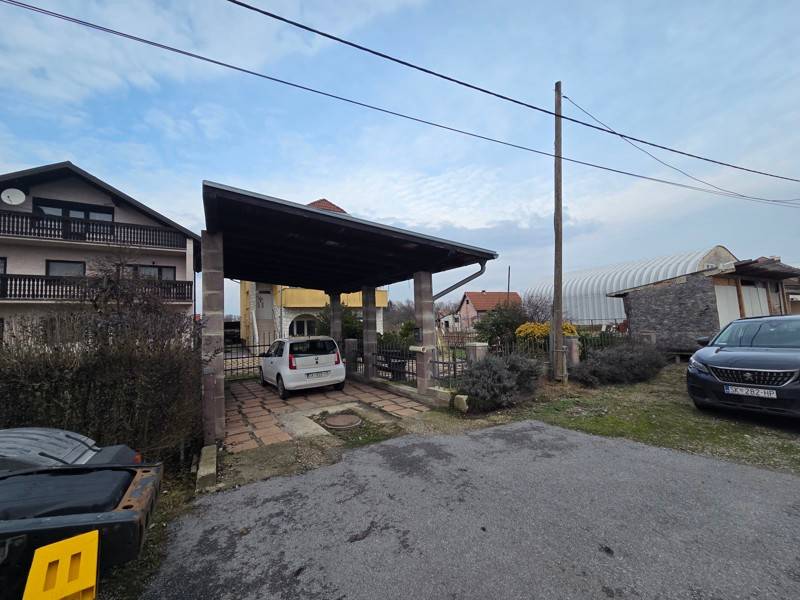 U dvorištu se nalazi nadstrešnica za auto i montažna nadstrešnica za alat i kosilicu.