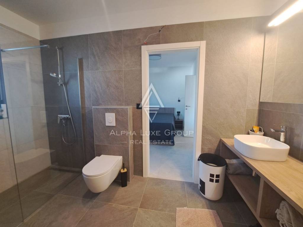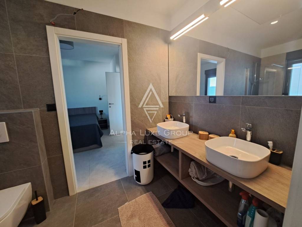 Wir präsentieren eine außergewöhnlich moderne Villa in wunderschöner Lage am Stadtrand in der Nähe von Poreč, am Rand der Bauzone in einer ruhigen Nachbarschaft. Diese besondere Immobilie liegt vor der Kulisse von Olivenhainen und verkörpert den mediterranen Lebensstil. Die Lage bietet die perfekte Balance zwischen Abgeschiedenheit vom Stadttrubel und Nähe zu wichtigen Einrichtungen.