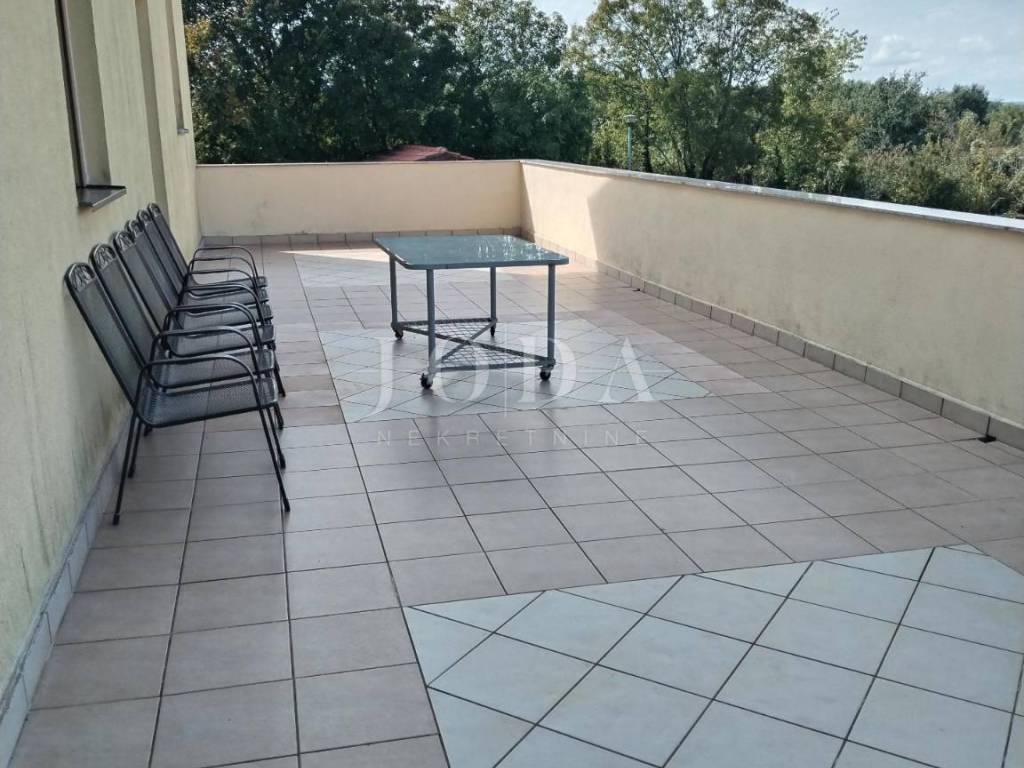 Im ersten Stock befindet sich eine Wohnung mit drei Schlafzimmern, drei Badezimmern, Küche, Esszimmer und Wohnzimmer sowie einer großen Terrasse von 40 Quadratmetern.
