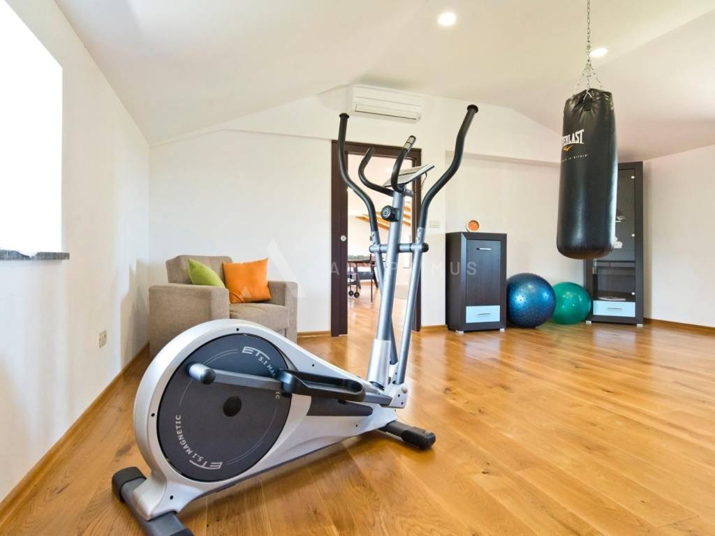 Zum Verkauf steht ein geräumiges, 220 m großes Haus mit komfortabler und funktionaler Raumaufteilung: 3 Schlafzimmer, 2 Badezimmer, 1 WC, Küche mit Esszimmer, Wohnzimmer mit Kamin, Spielzimmer mit Fitnessbereich und Garage. Es verfügt über eine elektrische Zentralheizung, Klimaanlage in allen Zimmern und einen geräumigen und hellen Innenraum. Ruhige Lage, ideal für eine Familie oder als Investition zur touristischen Vermietung.