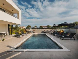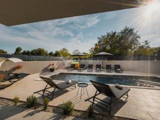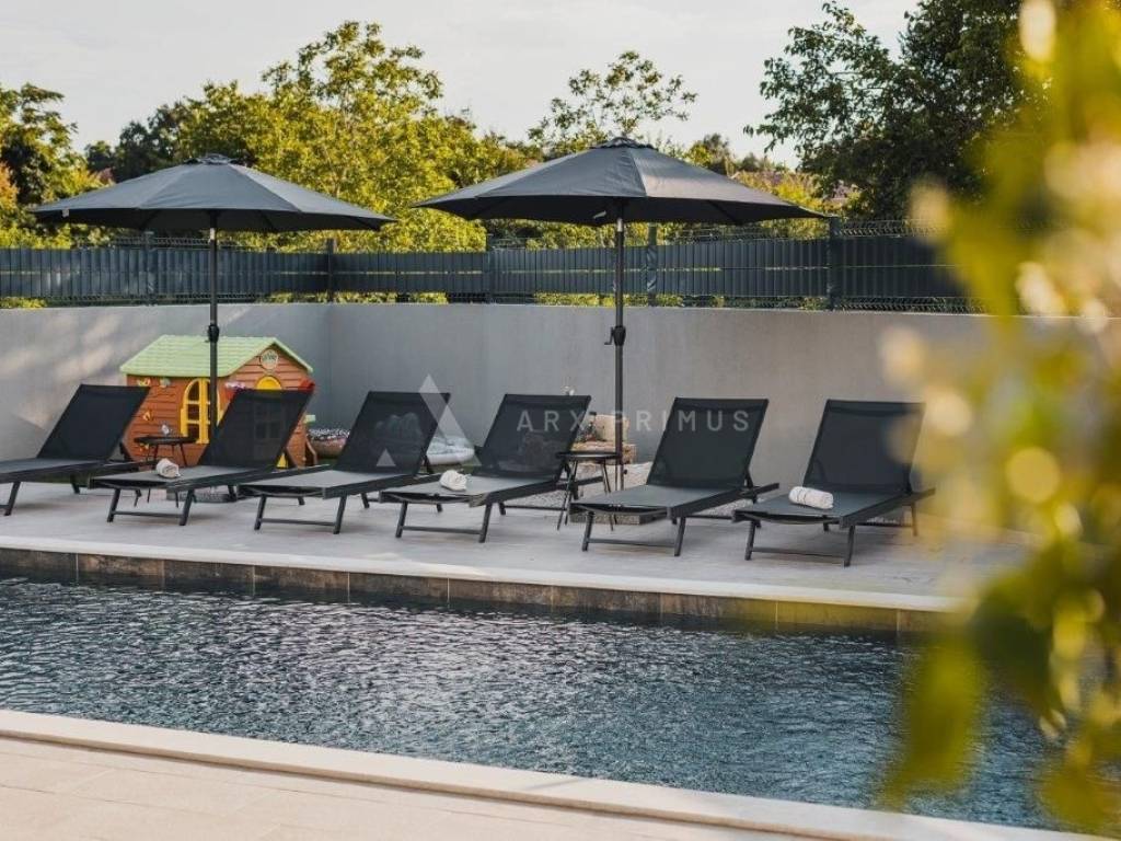 Neu gebautes Haus mit 3 Wohnungen und einem Swimmingpool in Čepljani. Hochwertiges Haus in ruhiger Lage unweit der Grenze zu Slowenien. Im Erdgeschoss befinden sich 2 Wohnungen mit jeweils 1 Schlafzimmer. Im ersten Stock befindet sich 1 große Wohnung mit 3 Schlafzimmern, die in 2 funktionale Wohnungen unterteilt werden kann. Schön dekorierter Hof mit Gemeinschaftspool und Parkplätzen. Zum Haus gehört auch eine Taverne zum geselligen Beisammensein. Es wird voll ausgestattet und möbliert verkauft. Klimaanlagen installiert.