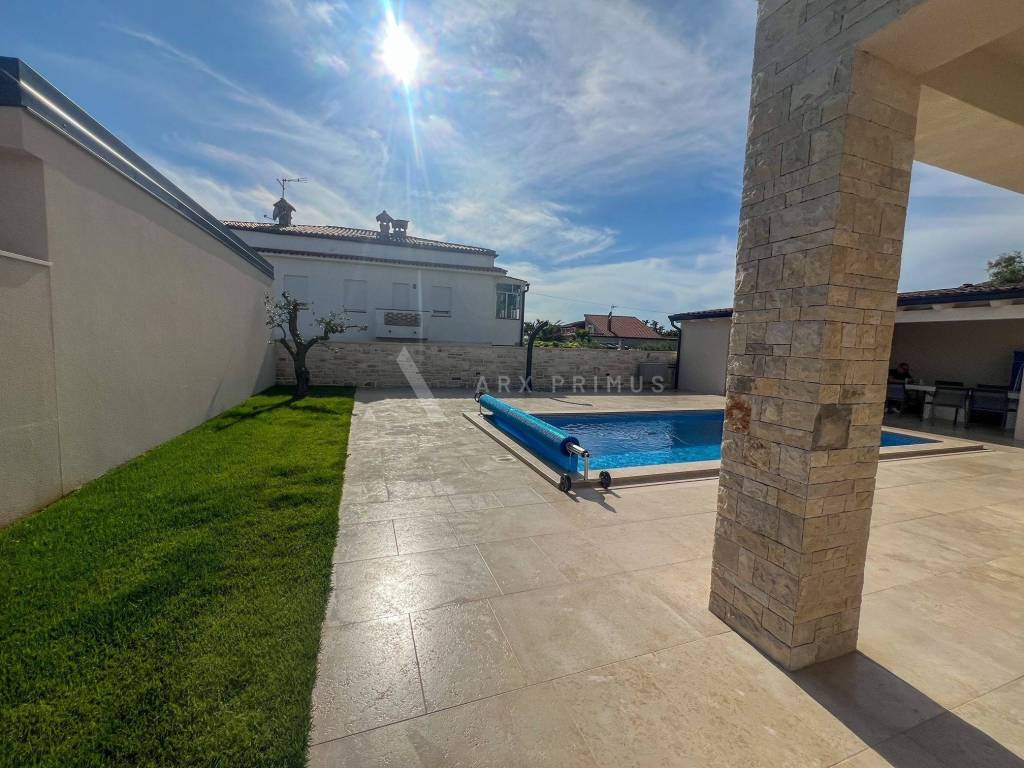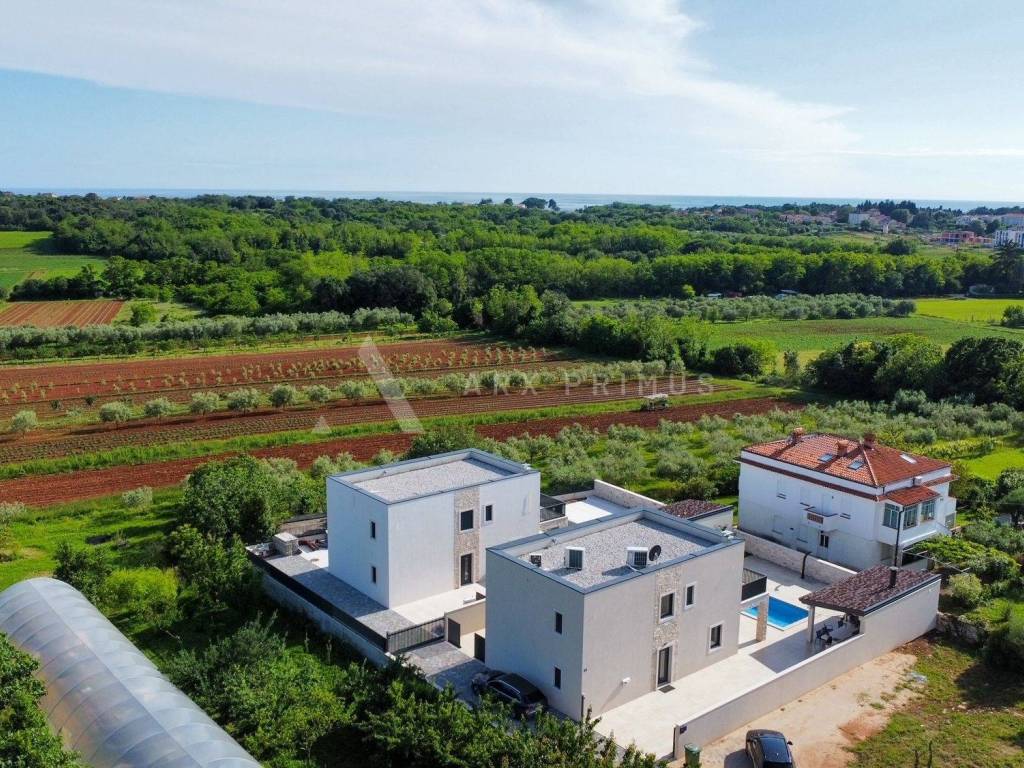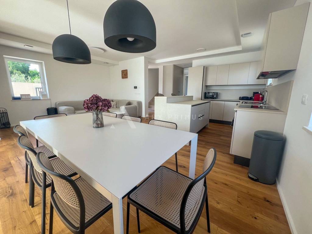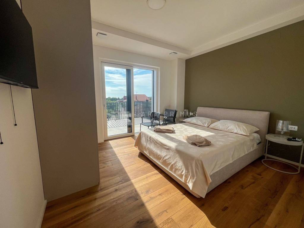 Eine Luxusvilla in Top-Bauqualität mit wunderschön angelegtem Garten und Swimmingpool in ruhiger Umgebung in Meeresnähe. Die Villa verfügt im Erdgeschoss über ein Wohnzimmer mit Küche und Esszimmer, ein Schlafzimmer mit Badezimmer sowie einen Technikraum und eine Toilette. Vom Erdgeschoss aus hat man Zugang zu einem wunderschön dekorierten, mit Steinen gepflasterten Innenhof mit beheiztem Außenpool und Sommerküche mit Toilette. Im Obergeschoss befinden sich 3 Schlafzimmer, jedes mit eigenem Badezimmer und einer Terrasse mit Blick auf das Meer und das Grüne. Unter der Villa befindet sich außerdem ein Keller mit allen Strom- und Wasseranschlüssen. Installierte Fußbodenheizung über eine Wärmepumpe, Klimaanlagen in allen Räumen und ein automatisches Luftumwälzsystem. Die Villa ist voll ausgestattet und möbliert.