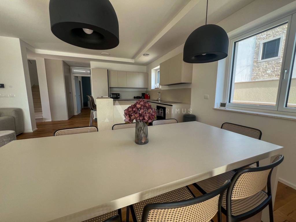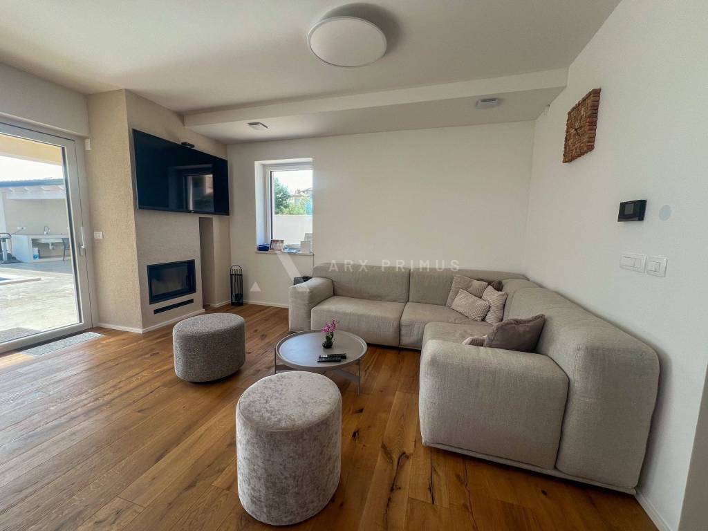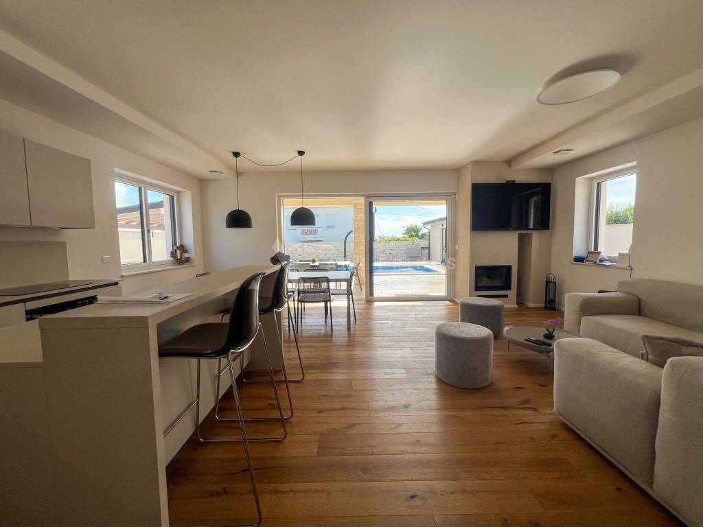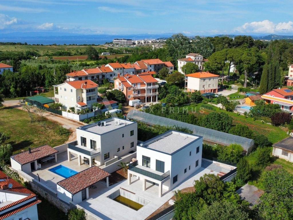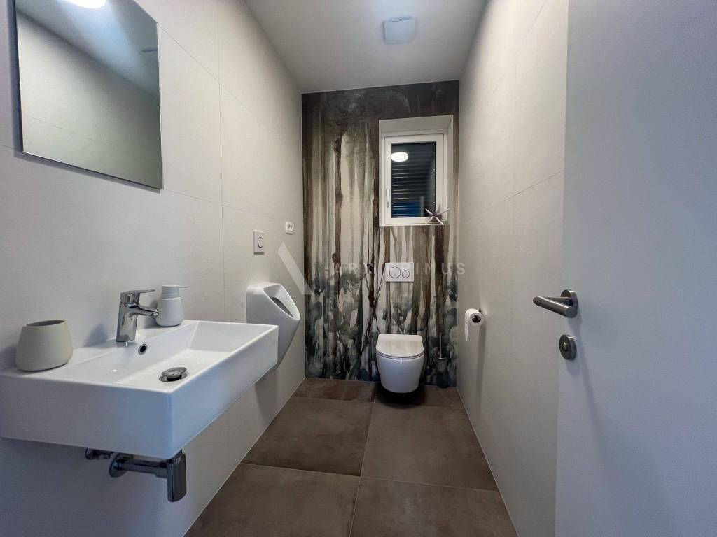Eine Luxusvilla in Top-Bauqualität mit wunderschön angelegtem Garten und Swimmingpool in ruhiger Umgebung in Meeresnähe. Die Villa verfügt im Erdgeschoss über ein Wohnzimmer mit Küche und Esszimmer, ein Schlafzimmer mit Badezimmer sowie einen Technikraum und eine Toilette. Vom Erdgeschoss aus hat man Zugang zu einem wunderschön dekorierten, mit Steinen gepflasterten Innenhof mit beheiztem Außenpool und Sommerküche mit Toilette. Im Obergeschoss befinden sich 3 Schlafzimmer, jedes mit eigenem Badezimmer und einer Terrasse mit Blick auf das Meer und das Grüne. Unter der Villa befindet sich außerdem ein Keller mit allen Strom- und Wasseranschlüssen. Installierte Fußbodenheizung über eine Wärmepumpe, Klimaanlagen in allen Räumen und ein automatisches Luftumwälzsystem. Die Villa ist voll ausgestattet und möbliert.