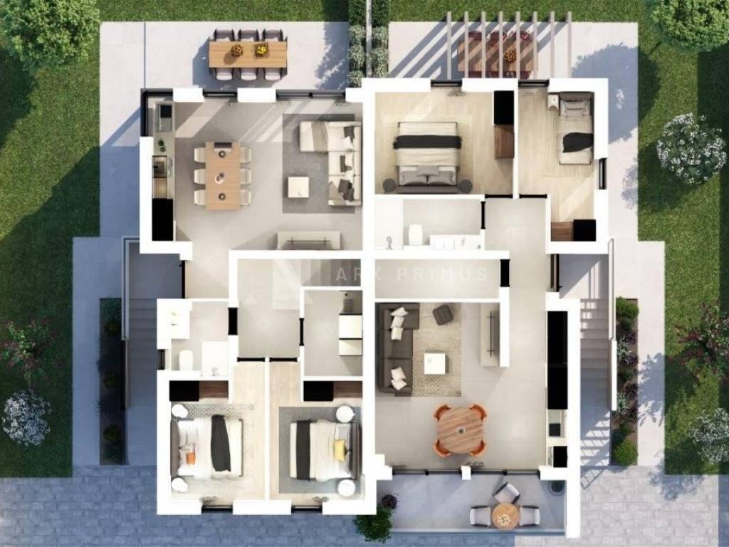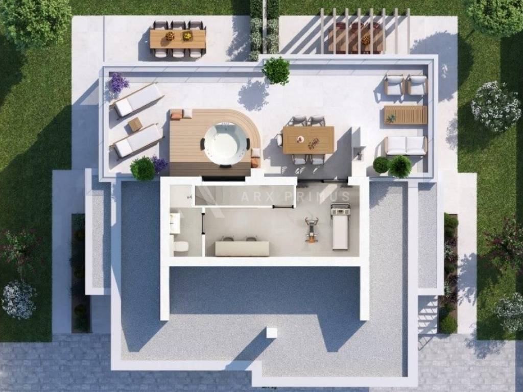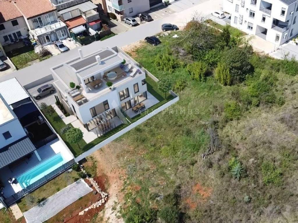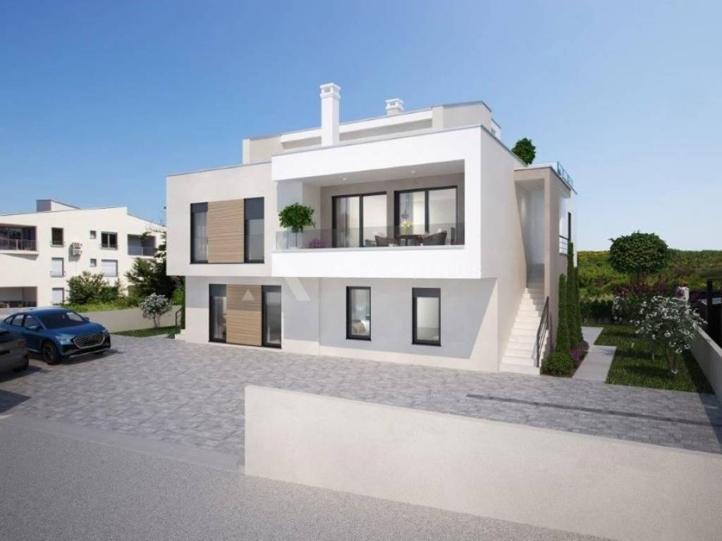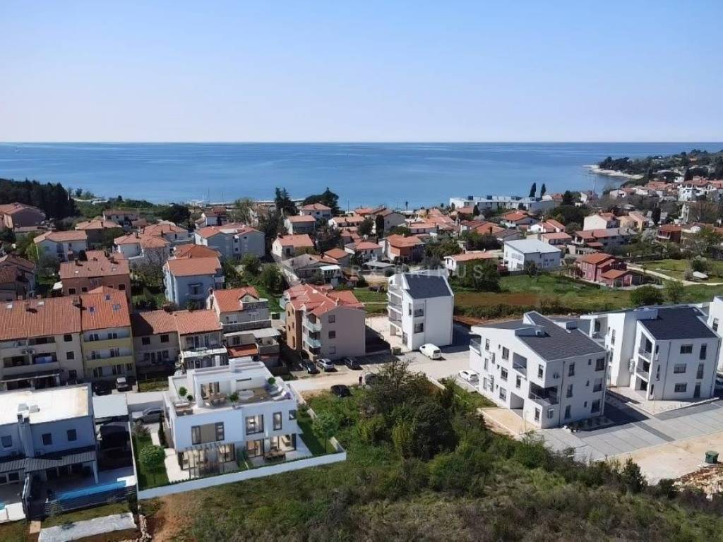 Wohnung in einem hochwertigen Gebäude in toller Lage nahe dem Meer in Zambratija. Es befindet sich im ersten Stock. Es besteht aus einem Eingang mit Flur, einem Abstellraum, einem Wohnzimmer mit Küche und zwei Schlafzimmern. Im ersten Stock gibt es ein weiteres Schlafzimmer, ein Badezimmer und eine Dachterrasse von 55 m2 mit Installationen für eine Sommerküche und einen Whirlpool. Installierte Fußbodenheizung über Wärmepumpen und Klimaanlage.